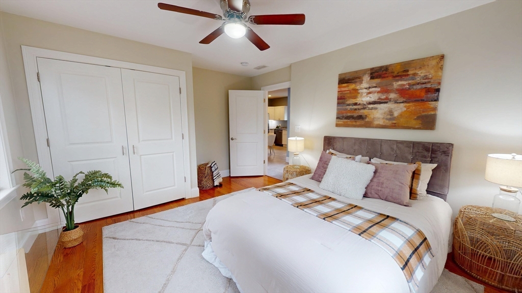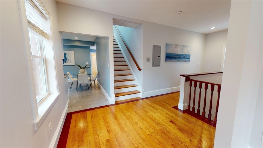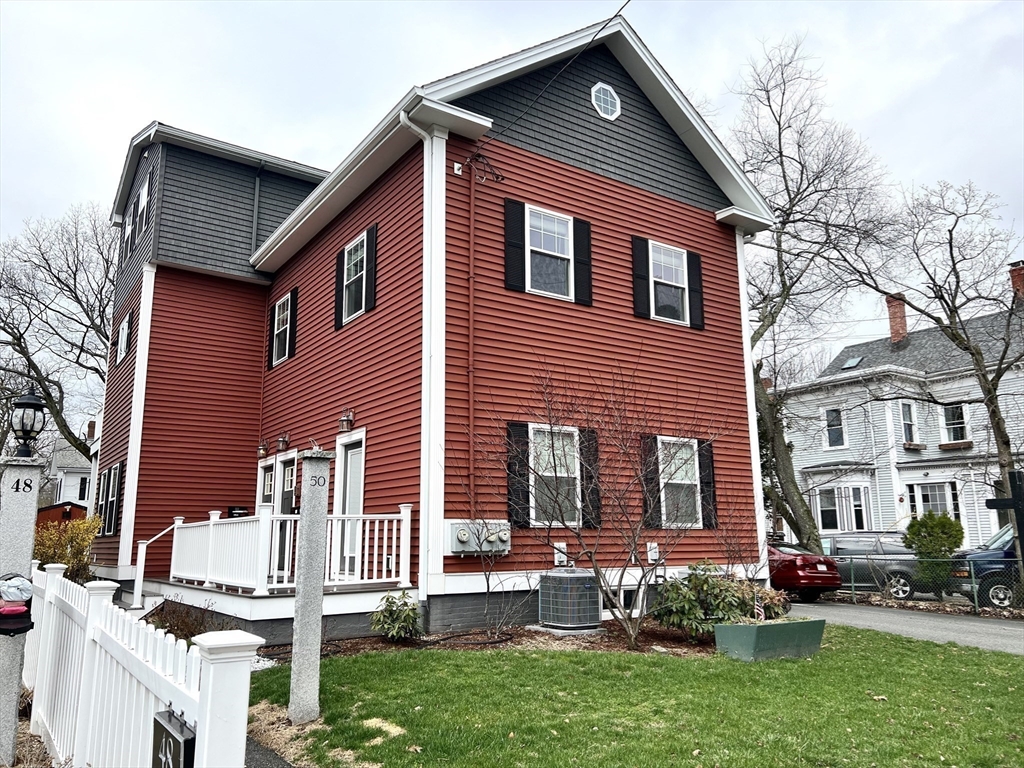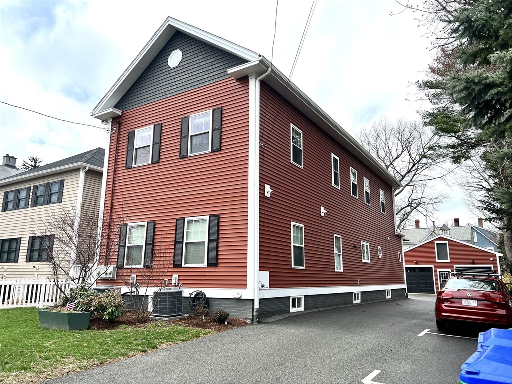 OPEN SUNDAY 12-1:30 HISTORIC Medford Square neighborhood is home to this ULTRA modern two level, condominium suite in renovated 1850 home that was built to overlook the Mystic River. Mr. Darius Greene, flour merchant, would raise his family here. Gut renovation and restoration included Wood clapboard exterior, open air porches, Oak flooring with inlaid Mahogany detail, wrapped up with ULTRA modern decor like 2 custom tile, Full bathrooms, White Shaker Cabinet eat in kitchen with ample granite counters and stainless steel appliances. 20 ft living room on opposite side of the home from the sleeping areas- all with tons of closet space!. Private, Upper level, Primary Suite with wide, custom tile shower. Private deck overlooking the yard. 1 car garage parking PLUS 2 off street parking spaces. Fenced yard and shed. This beauty lives in a CHARMING neighborhood, near restaurants, Chevalier Theater, Route 93 access, steps from Mystic River recreation and the bike path. Walk Score of 87