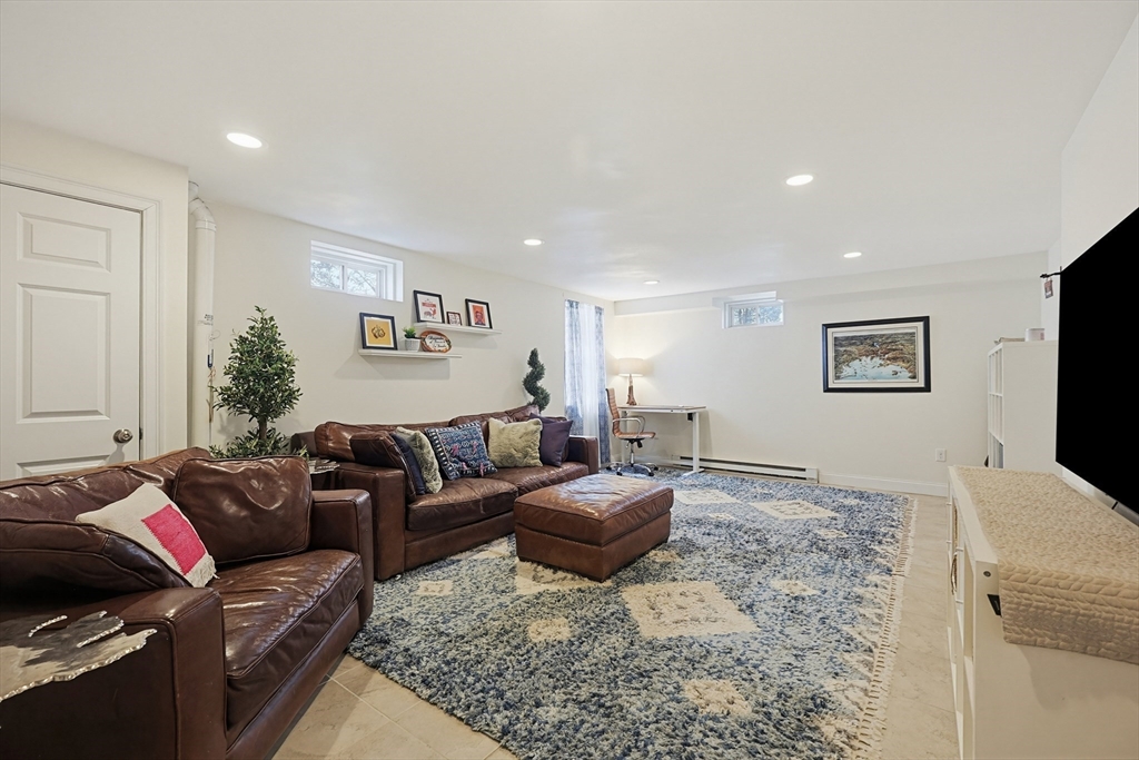 Don't miss this outstanding opportunity to own a spectacular young townhome in an extremely convenient location. This home truly has it all with a sun-splashed, modern & open floor plan with 3 levels of living & gleaming hardwood floors throughout. The main level offers a large fireplaced living room with bay windows & elegant trim that leads to the dining room with sliders out to the rear composite deck & private fenced backyard. The gorgeous open kitchen is complete with gas cooking, custom cabinetry, stainless appliances & an oversized peninsula with breakfast bar. The open feel continues with a wide central staircase beaming with light through the vaulted ceiling's skylight leading to the bedrooms. The primary suite also has vaulted skylit ceilings, full bath with double vanities, spa tub, large shower & private toilet. There's even a wet bar, private exterior deck & a W-I-C with a custom shelving. The finished lower level has a full bath making it a perfect 4th bedroom or office.