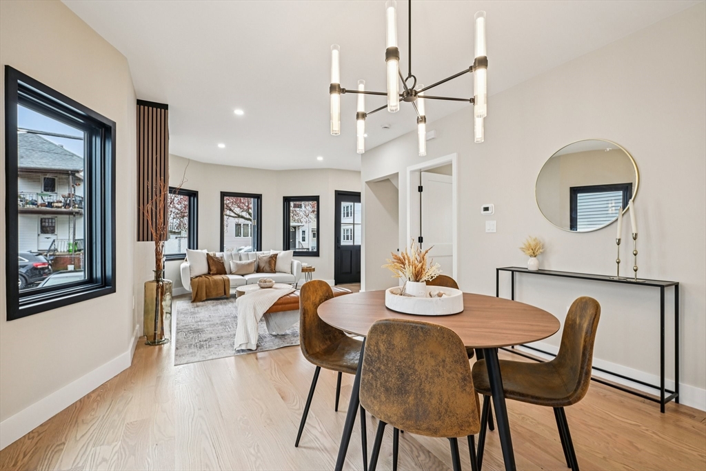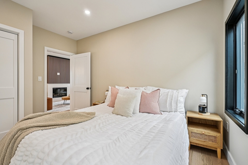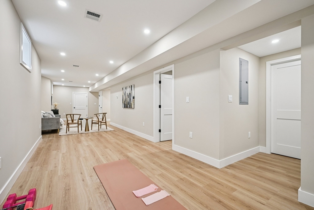 Sophisticated 3-bedroom residence offering refined modern living in desirable Medford, ideally located near Tufts University. This elegant unit features a spacious open-concept layout seamlessly connecting the living room, dining area, and designer kitchen, ideal for both everyday comfort and entertaining. The kitchen showcases premium cabinetry, quartz countertops, and stainless steel appliances, complemented by beautifully finished hardwood flooring and abundant natural light throughout. The primary suite offers a luxurious retreat with a well-appointed master bath. The finished basement provides exceptional additional living space, featuring a versatile family room or gym, private office, and an additional bedroom with a full bath, ideal for guests, extended living, or work-from-home comfort. Additional highlights include in-unit laundry, a deck, and off-street parking space. Convenient access to transportation, dining, shopping, and Boston.