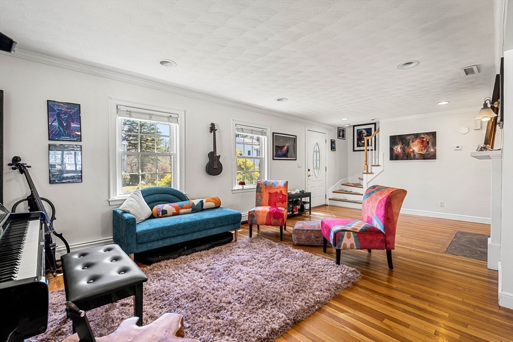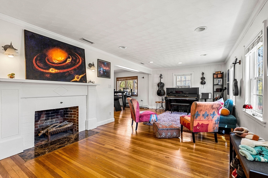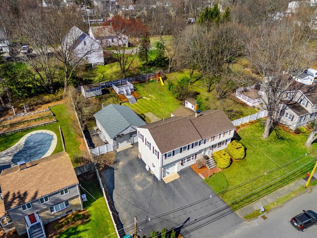 This stunning 4BR+Office/3BA Westside colonial checks every box. Set on an expansive lot with exceptional outdoor space, it offers a private deck and generous yard ideal for entertaining or relaxing, plus abundant paved parking. Inside, gleaming hardwood floors lead to a spacious kitchen with granite counters, stainless steel appliances, and a breakfast bar. The living room features a cozy fireplace, while the sunken sunroom overlooks the backyard. A versatile first-floor bonus room works as a bedroom, office, or guest suite. Upstairs includes a large primary with walk-in closet and en-suite bath with soaking tub and separate shower, plus three additional bedrooms. Finished basement, in-unit W/D, mini-splits, central air, and attached garage. Detached oversized garage offers ADU, gym, or workshop potential. Easy access to Rt. 128, shopping, and Reeves School.