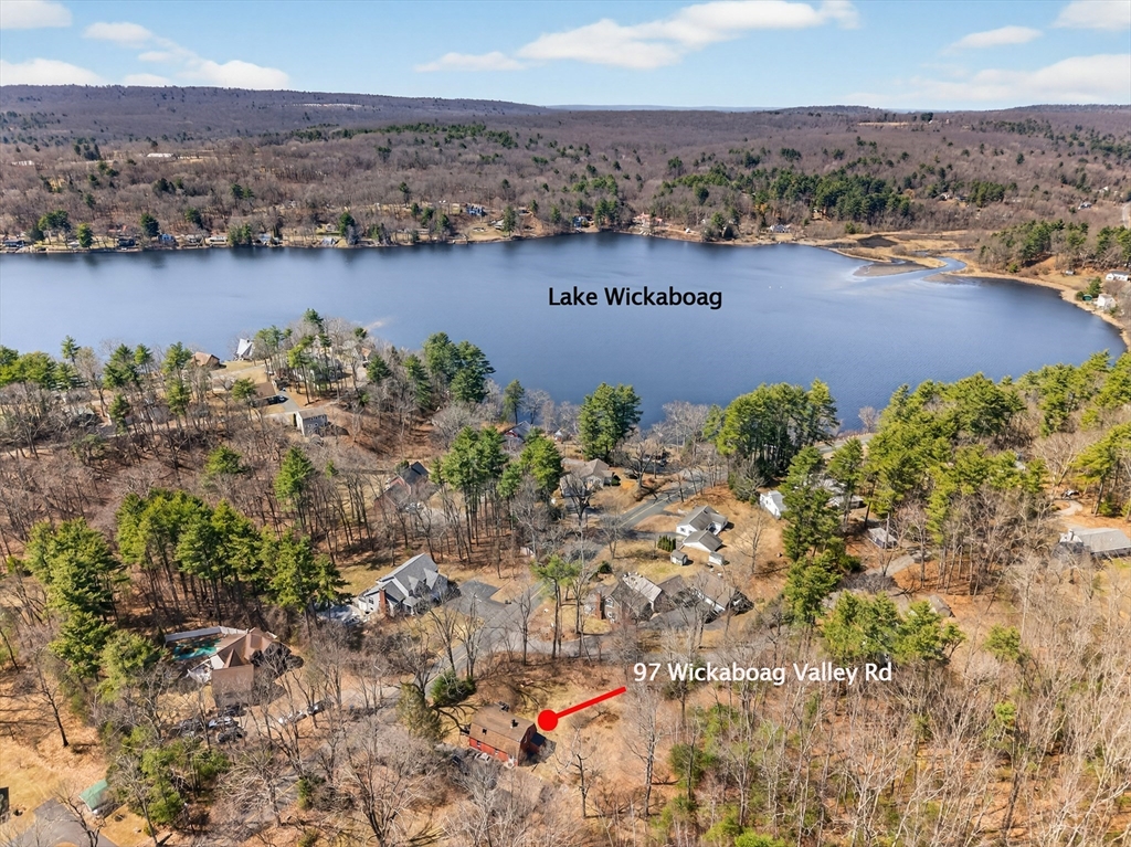 Come see this beautiful 3 bed, 2 bath home across the street from Wickaboag Lake! Sitting on nearly 1.5 acres this home has everything you've been looking for. The 1st-floor features a kitchen with adjacent dining area, a living room, bedroom, an office/study and a full bathroom. The 1st-floor also features a pellet stove to help keep you cozy all year long. Upstairs you'll find 2 more bedrooms including 1 with it's own private deck with views of the Lake! A 2nd full bathroom wraps up the 2nd-level. Outside you'll find many mature plants and flowers as well as a private multi-tiered yard with beautiful stone walls. The detached garage provides extra convenience. The large driveway provides plenty of parking. Wired for a generator. Shared, deeded access to Wickaboag Lake! Come see this home today!!!