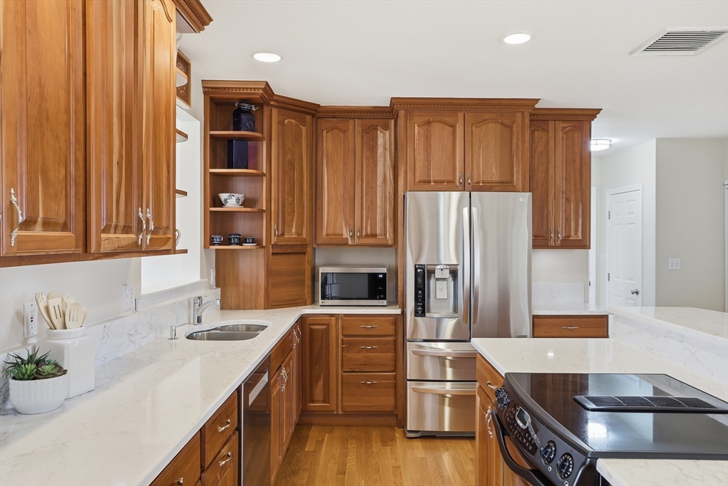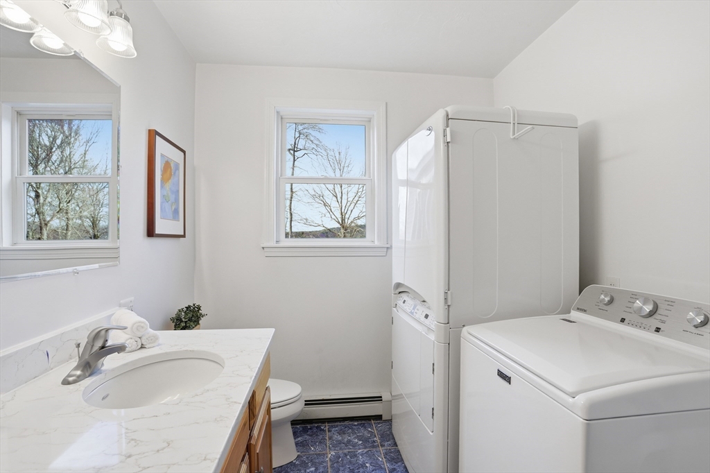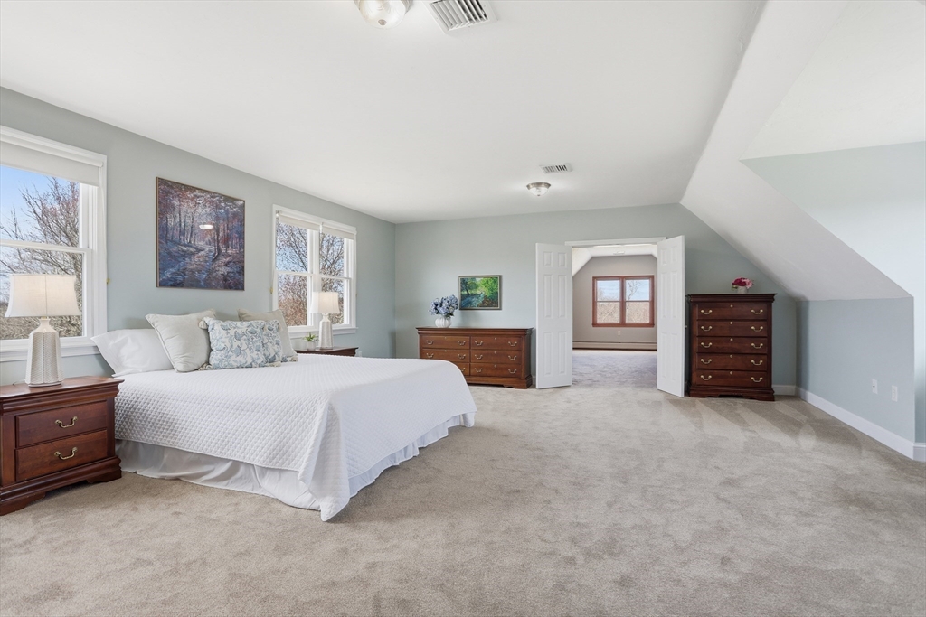 Beautiful cape style home situated perfectly on the Acton town line perched above Lake Nagog w/ sweeping water views! Custom built & significantly improved upon. This home is in excellent condition w/ recent updates including a brand-new roof, furnace, hot water tank, central A/C, countertops, sinks, faucets, driveway & more! Level I features a LR, DR, EIK w/ cherry cabinetry, quartz countertops, a fireplace & skylit great room addition overlooking a flat back yard and a mahogany deck. The thoughtful floor plan is designed w/ a separate ensuite on level I to accommodate extended stay guests, one level living, au pair, or multigenerational quarters. On level II you will find 3 bedrooms including a large owners suite w/ a walk-in closet, luxurious bathroom w/ a jet tub, tile shower & generous vanity and countertop space. The 44' garage parks 4 cars and there is expansion potential in the walk out basement w/knee walls for future windows. A special offering in a touted school district.