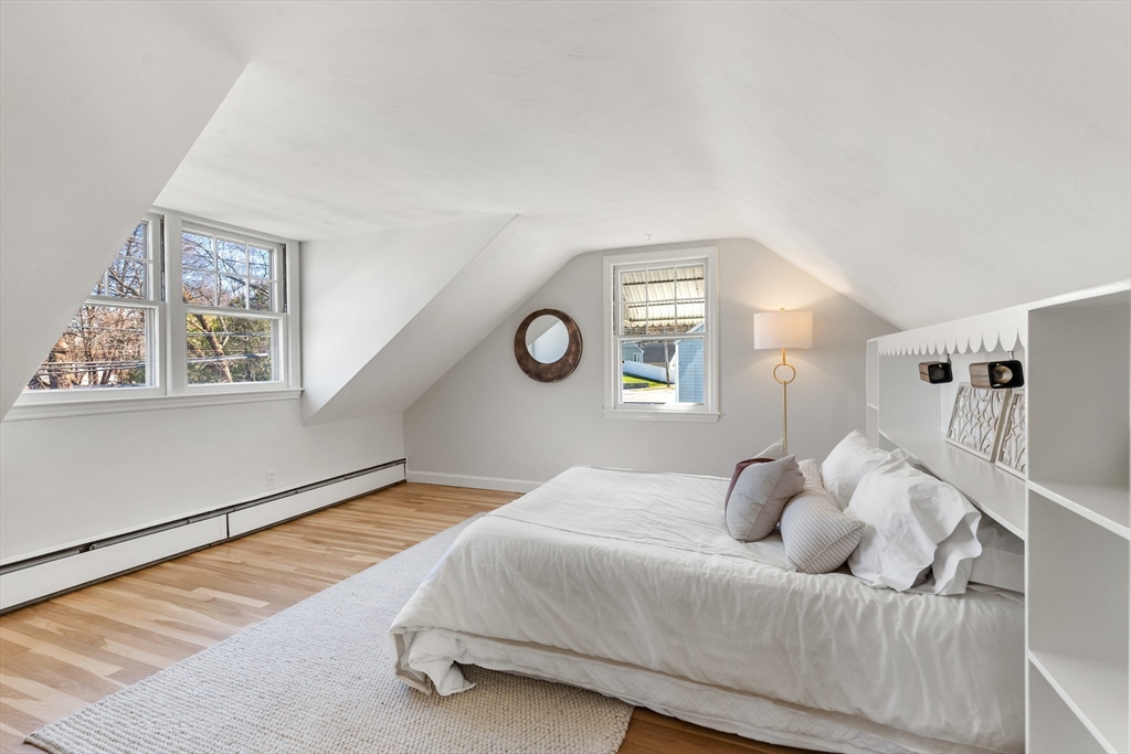 Welcome to this classic Cape, ideally situated in a coveted location near Horn Pond and the brand-new Lynch Elementary School. Blending timeless charm with exciting potential, this recently refreshed home features newly painted interior and refinished hardwood floors, creating a warm and inviting atmosphere throughout. A sun-drenched family room addition with radiant heat offers a truly special retreat. With walls of glass framing views of the scenic yard, this space is perfect for both relaxed living and entertaining. The flexible layout includes four bedrooms, thoughtfully distributed with two on each floor, offering versatility for today’s lifestyle. The full basement presents additional opportunity for customization and future living space. Ready to be cherished by its next owners, this home is brimming with character and potential.