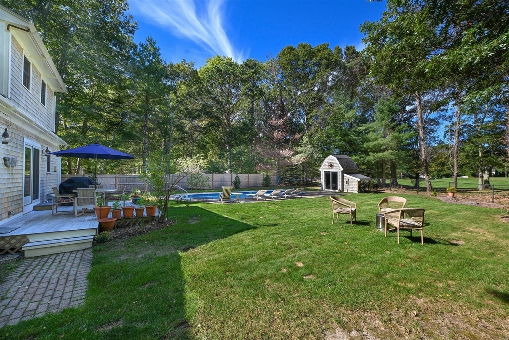 Cape Charmer with custom features thru-out. Warm wood floors and tiled baths. Fireplaced LR and fireplaced primary BR with private tiled bath. Home office on first level. Kitchen with crafted island and adjacent DR spills out to backyard with private inground pool and yard abutting The Ridge Club golf course for singular setting. New FHA gas heating system. Deeded rights to beachside enjoyment with beach, swim raft, tennis and executive clubhouse. Easy access to all amenities and activities. Come see this awesome opportunity.