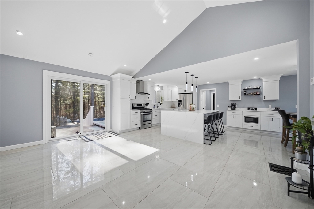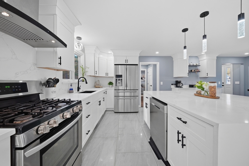 Welcome to 24 Hunter’s Lane in Nashua, New Hampshire, a beautifully remodeled home in a highly desirable neighborhood. Inside, an open-concept layout features a stunning kitchen flowing into the main living area, highlighted by cathedral ceilings and abundant natural light. The kitchen offers an oversized quartz island and a charming coffee bar, perfect for entertaining. The main level includes a spacious living room, dining area, and a full bathroom. Upstairs, you’ll find four generously sized bedrooms and a fully updated bathroom. The semi-finished basement offers flexible space for a gym, office, or playroom. Enjoy a fully fenced backyard with a patio, above-ground Gibraltar pool, and hot tub—ideal for relaxing or hosting. Additional features include a two-car garage and central air. Conveniently located near shopping, dining, and major highways, this move-in ready home offers space, style, and comfort. Schedule your showing today!