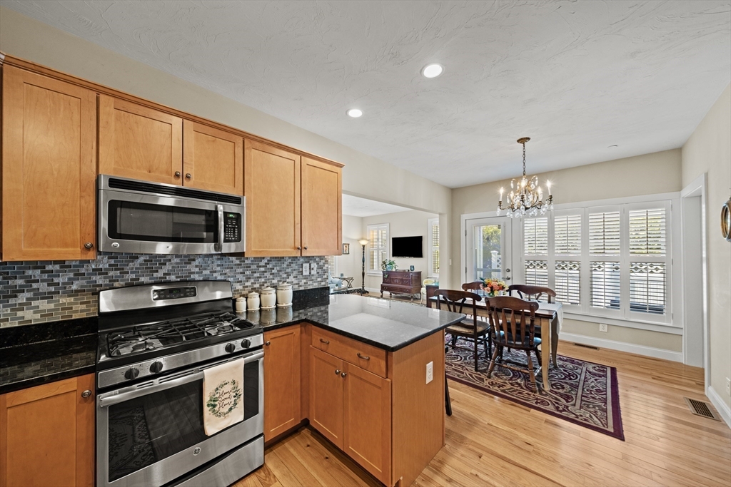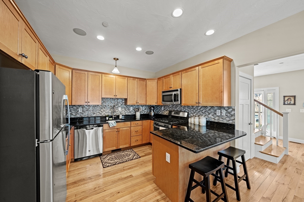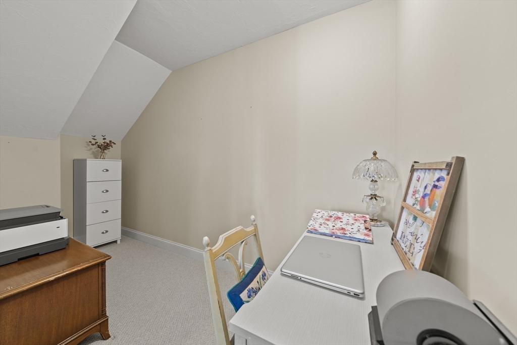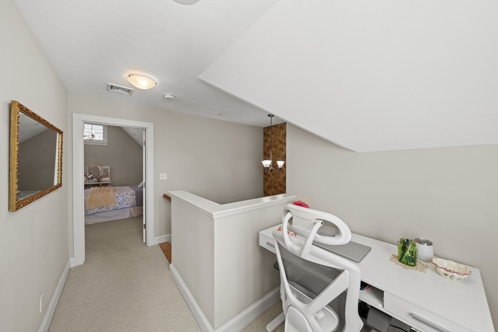 Welcome to the Cottages at Hollybrook in Union Point! This well-kept home offers first-floor living in one of South Weymouth’s most desirable communities. Set on a charming landscaped green, it features covered front porch, private fenced bluestone patio, attached 1-car garage and extra parking. The sun-filled open floor plan boasts 9-ft ceilings and hardwood floors. The stylish kitchen offers granite countertops, peninsula seating, stainless steel appliances, glass and stone backsplash, and abundant cabinetry. Upgrades include in-ceiling speakers and custom shutters. The first-floor primary suite has wrap-around windows, walk-in closet, and en-suite bath with walk-in shower. A tiled mudroom includes powder room, pantry and laundry. Upstairs features a vaulted bedroom, bonus room, loft nook, and full bath. Large unfinished basement for storage. Enjoy Union Point amenities: walking trails, playground, dog park, commuter rail to Boston, Route 3 access, and Derby Street Shoppes.