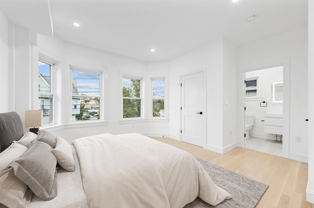 Rare gut renovated 2 family in the heart of Revere, offering luxury & income potential. With over 600 sqft of patio and outdoor deck space & a large backyard. This property is ideal for both owner occupants & investors. Unit 1 features 2 bedrooms, modern kitchen w/ quartz countertops, stainless steel appliances, custom closets & a stylish bath w/ Italian terrazzo tile. Spanning 3 levels, Unit 2 offers 3 bedrooms & 3 full baths, highlighted by an open kitchen w/ a quartz waterfall peninsula, elegant wainscoting & a primary bedroom w/ en suite bath. All bedrooms feature custom closets. Spa like baths include heated LED mirrors, travertine & terrazzo finishes. Recessed lighting & premium finishes throughout, new systems & separate utilities ensure efficiency & low maintenance living. Outside enjoy multiple decks, a paver patio, fenced yard & a new driveway w/ 2 off street parking. Steps to MBTA Bus 110 w/ access to Blue & Orange Lines, Broadway & Revere Beach!