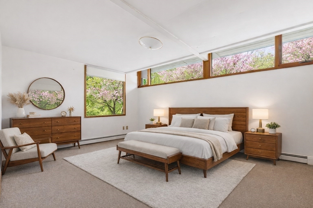 Nestled on a private acre in the beautiful and highly desirable Pheasant Brook Estates, this 4,196sf split-entry deck house offers a rare opportunity to create your dream home. Featuring 5–6 bedrooms, 4 full bathrooms, and expansive entertaining rooms. The Primary Suite includes a spacious bath and an enormous walk-in closet. Best of all is waking up to a spectacular water view. This home's original details include 2 fireplaces, mahogany trim, cedar ceilings, and floor to ceiling walls of glass that highlight its mid-century modern character. While in need of updating, the well-built home provides an exceptional canvas to enhance its unique design. Flexible living spaces accommodate guests, offices, or extended living. Professionally designed mature plantings along with the abutting pond give this home a cabin in the woods feel. Yet the location offers all the best amenities Lexington has to offer. Enjoy privacy, natural beauty, and convenience - all in a premier neighborhood.