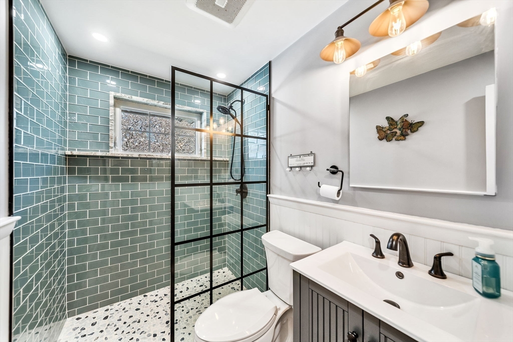 Beautifully updated and thoughtfully expanded, this bright and spacious home in a sought-after Holliston neighborhood, just moments from Stoddard Park & Lake Winthrop, offers the perfect blend of style, comfort & functionality. The sun-filled main level showcases an open-floor plan centered around an updated kitchen with white cabinetry, granite, large center island, SS & gas cooking. Seamlessly flowing from the kitchen are a charming fireplaced living rm, dining rm and spacious family rm addition with vaulted ceilings, wall of windows and oversized slider w/ transom, adding beautiful natural light. All three main-level bedrooms feature HW floors, inc. a lovely primary suite w/ its own full bath (2023). A second renovated full bath completes this level. The LL provides exceptional living space with a sizable 4th BR w/ FP, 3rd full bath (2023) & home office w/ built-ins & French door. A lg. unfinished area offers abundant storage. Outside, enjoy a beautiful yard w/ patio, firepit & deck