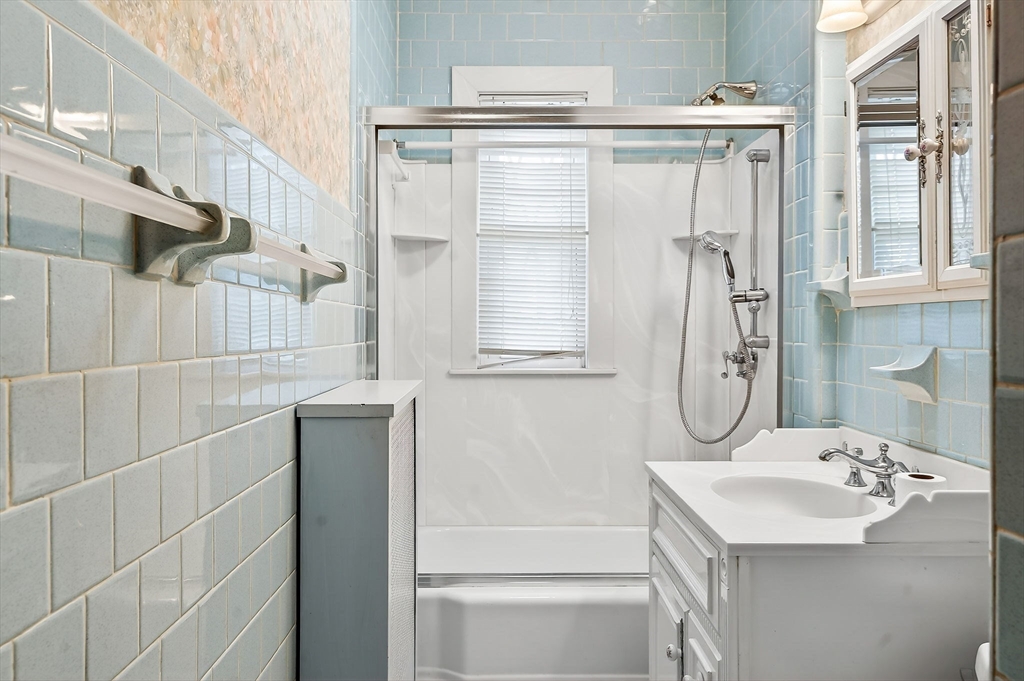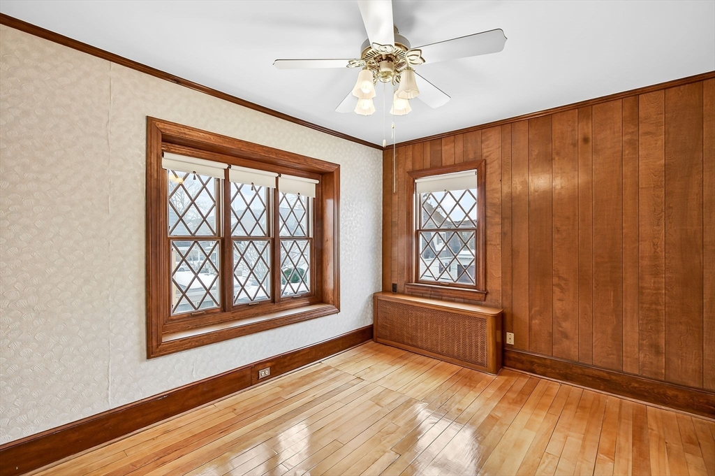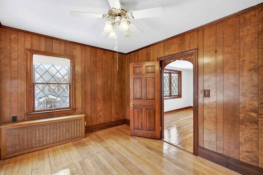Bright & Updated 3-Bedroom Apartment on a Quiet Street. The spacious second-floor apartment includes 3 bedrooms and a full bathroom. It offers a functional and comfortable layout. The eat-in kitchen is at the rear of the space overlooking the back yard. The dedicated laundry room with a utility sink are adjacent. A separate dining room and a generous living room are in the front with large windows and are ideal for both everyday living and entertaining. The kitchen, dining room and bathroom are tiled. The hardwood floors in the living room, dining room, and bedrooms have recently been refinished. Freshly painted, it is a clean, move-in ready space. Highlights include ample natural light and well-proportioned rooms, with additional storage in the attic. Off-street parking. Available immediately, come and see this beautiful space and enjoy the yard this summer.
