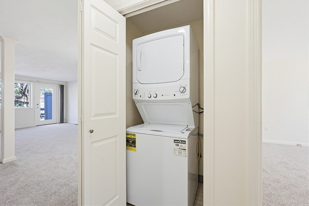 Welcome to this single level condominium with a private entrance in The Courtyard. Conveniently located on Route 110 close to Westford and Route 495 for easy commuting, this unit has been recently refreshed and ready for its new owners. Entering through the front door you are welcomed into a large open concept living area with a generous sized living and dining room combination. The spacious primary bedroom has a walk-in closet and the second bedroom is also good sized. All brand new carpeting throughout and the entire unit has been freshly painted. The bathroom has new flooring, a new vanity and new toilet Kitchen also has new flooring and recent appliances. Washer and dryer is located within the unit. Other features include gas heating, central air conditioning and private secured storage space in the basement. Enjoy all the amenities that The Courtyard has to offer including a pool and exercise room. This is a great opportunity for a first time buyer, investor or downsizer.