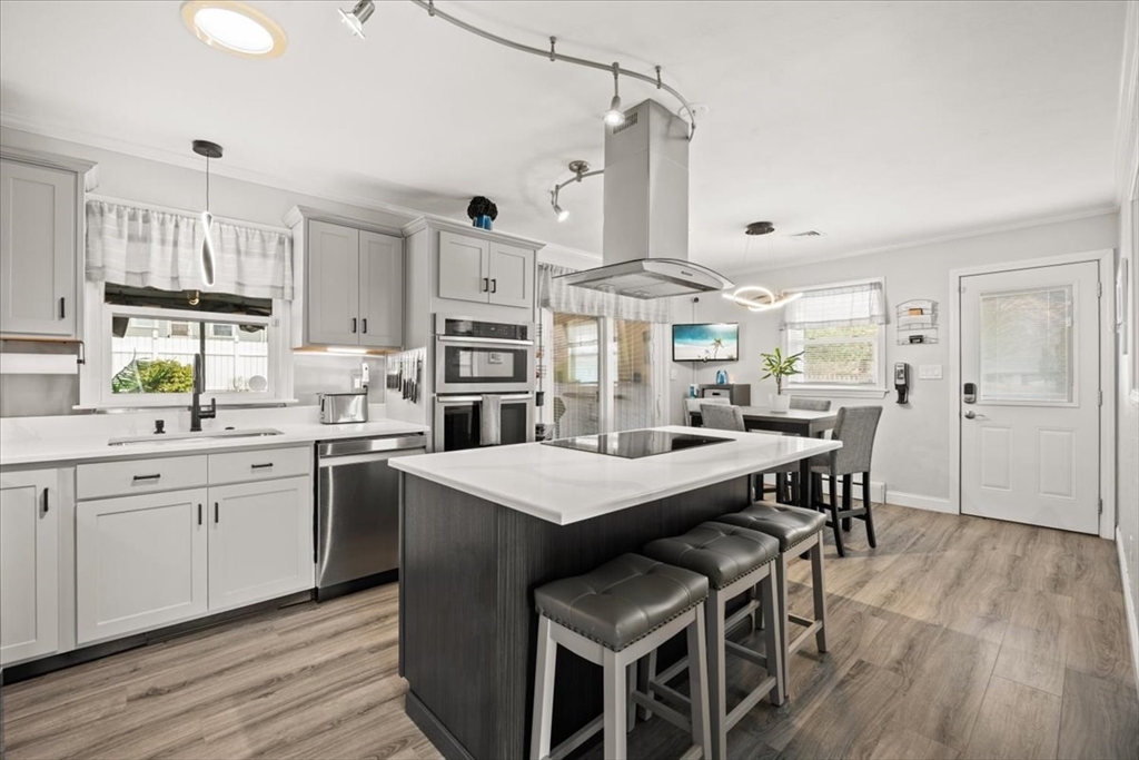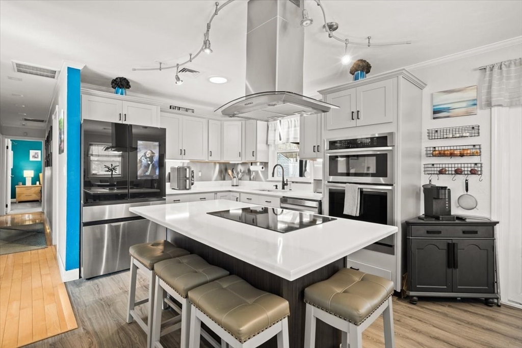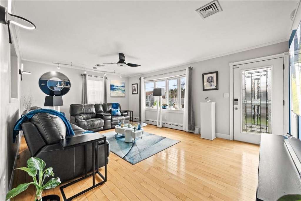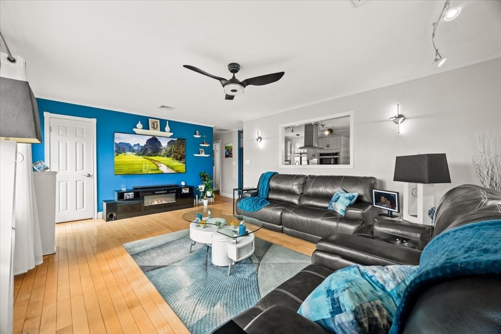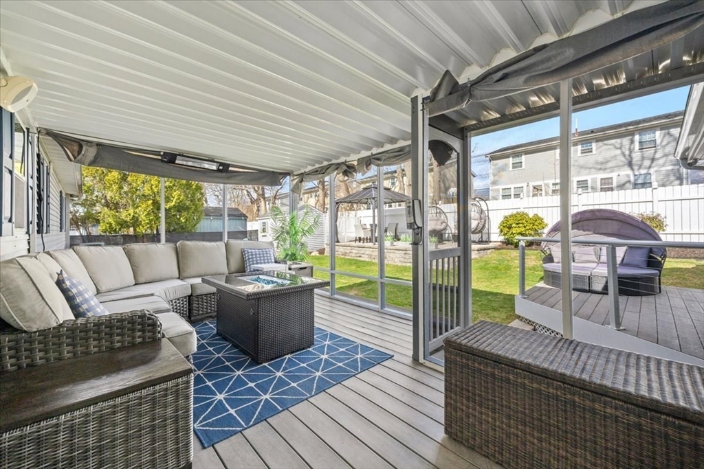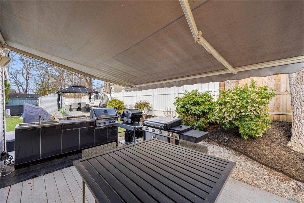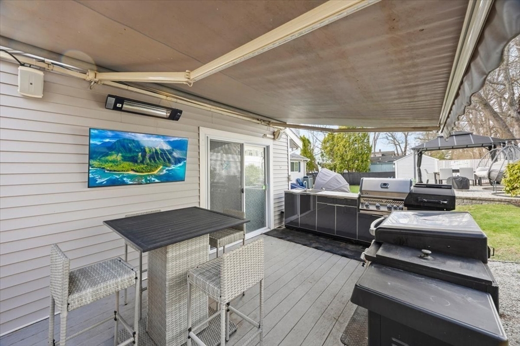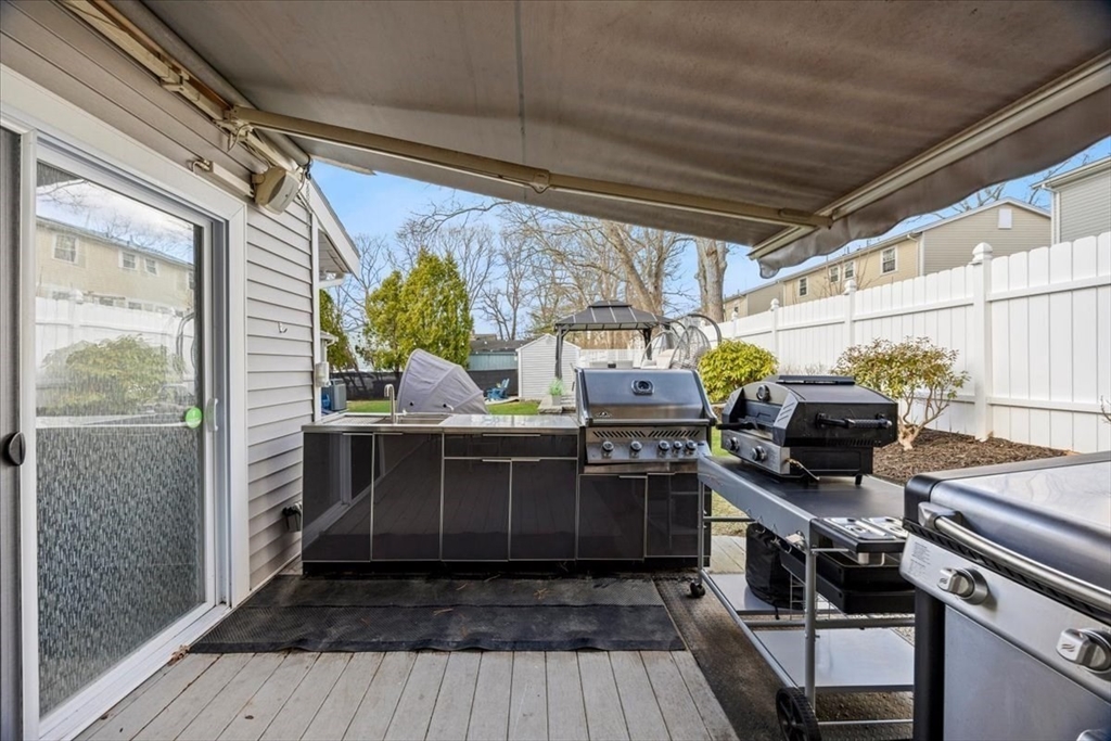 Have you been waiting for a Great Opportunity? Look at this Beautiful 3 BR 2 Bath Ranch with a 1 car garage, central air, and vinyl siding. Luxury awaits look at the Gleaming Maple Hardwoods in the Living Room accented by Oak Hardwood flooring in all 3 spacious BRs offering plenty of closet space, Chef's dream kitchen with high traffic vinyl flooring Stainless Steel Appliances and Quartz countertops. Fully finished basement with media room, wet bar, home gym, office, and extra full bath. All decking is composite. Enclosed porch off the kitchen overlooks a pet friendly fenced in yard. Outdoor Kitchen & Bar area. Hardscape patio pergola area, low voltage night lighting, 2 sheds for storage, and sprinkler system. This would be the Perfect Home to Host the Holidays or Entertain Family & Friends year-round. Gas Heat, City Water & City Sewer. All appliances remain. Smart Home App for Thermostats, Appliance notifications, locks, lights, & home audio. Just minutes to RT 140/195 and MBTA Rail.