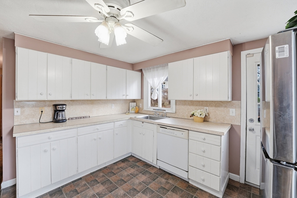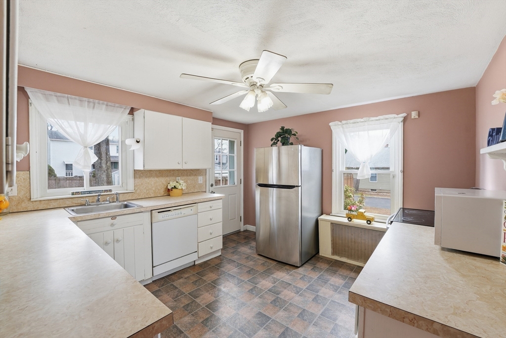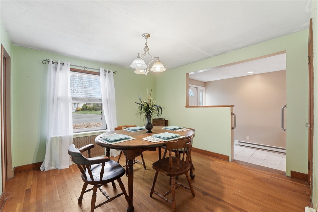 Absolutely Adorable and Affordable is this Charming Vinyl Sided Cape located on a side street in a wonderful neighborhood with a 1 Car Attached Garage set on a large fenced yard. As you enter from either the side door or direct entry from the garage you'll find a terrific playrm/mudrm w/easy care tiled floor w/access to the backyard which also opens up into the inviting dining room w/wood flrs. A spacious & bright living room with wood floors makes entertaining easy. A cheerful kitchen with lots of cabinets, the kitchen appliances are included for the Buyer there's also entry from the kitchen to the deck & fenced in backyard which is perfect for cookouts & outdoor activities. For the ease of living features a desirable 1st flr bedroom w/roomy closet w/woods along w/a full bathrm. Upstairs are two additional bedrms with pretty parquet wood floors, spacious closets and a convenient half bath! A full basement has potential to finish & great storage, efficient HB Smith Boiler. This is it!