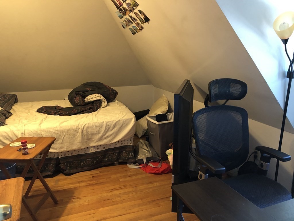 FOR RENT - Spacious 3 bedroom, 1 bath condo on top floor/4th floor walkup near Brookline Village, shops, restaurants and public transportation (Bus #60 & Greenline "D" train to downtown Boston and Longwood Medical area. High ceilings, wood floors, skylight, kitchen with gas stove, vented hood, fridge and dishwasher. In unit full size washer/dryer for your convenience. Heat included. Hot water paid by tenant. Sorry NO parking, NO overnight street parking. Available Sept 1