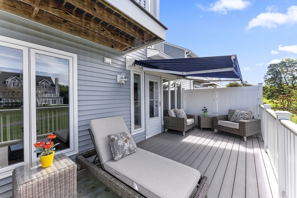 Perched atop a dramatic seaside bluff, White Cliffs Country Club offers sweeping views where sun, sand, and sea come together in perfect harmony. Membership in this exclusive coastal community grants access to an exceptional lifestyle, including unlimited golf, Har-Tru tennis courts, a newly renovated fitness center, a mineral water swimming pool, and an oceanfront restaurant overlooking the beauty of Cape Cod Bay. This spacious villa offers over 3,500 square feet of thoughtfully designed living space, featuring three bedrooms and three and a half baths. Highlights include a private Juliet balcony off the primary suite, two gas fireplaces, and a walkout lower level—perfect for entertaining or relaxing. Enjoy serene views of the lush 14th fairway right from your home. Recent upgrades include new vinyl siding, composite decking, and a professionally designed paver walkway and patio, enhancing both curb appeal and outdoor living. Many photos virtually altered/enhanced.