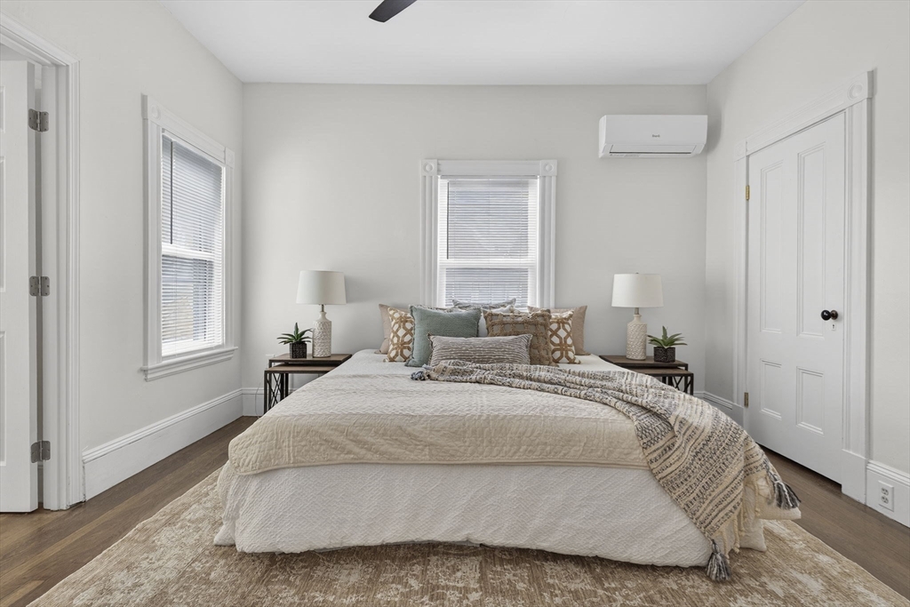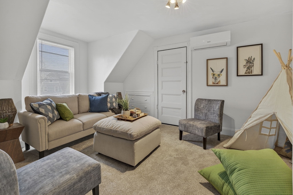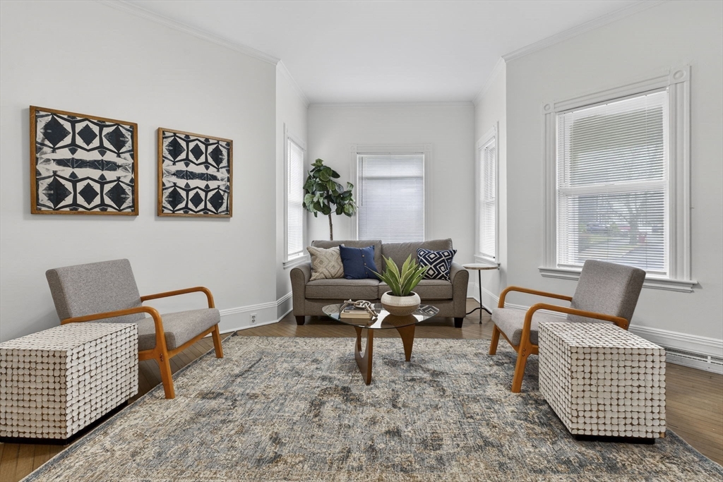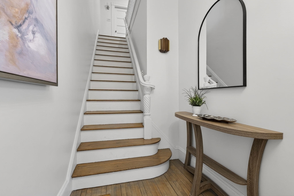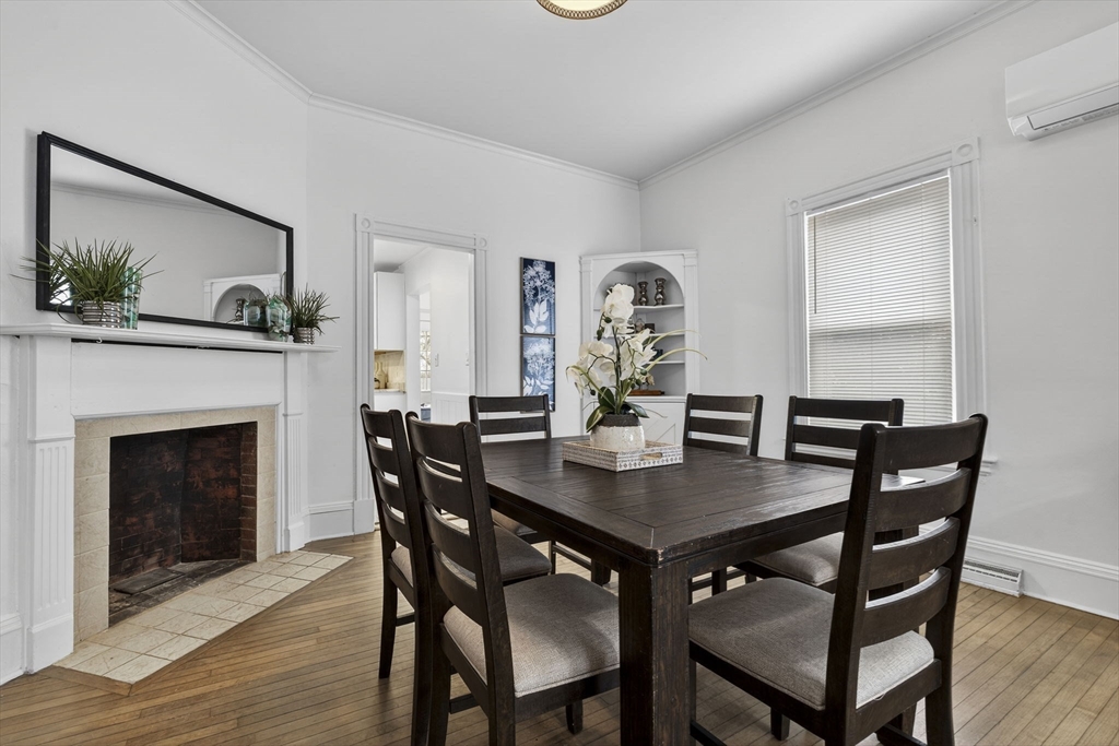 Don't miss this opportunity to live in an updated townhome-style duplex featuring light-filled living spaces, a flexible floor plan, and touches of yesteryear charm.The main level offers an updated kitchen, formal dining area, and bright, inviting living room.The primary suite includes a walk-in closet and private bath with double sinks.Two additional well-sized bedrooms complete the second level. The third floor provides flexible space ideal for a fourth bedroom, home office, or additional living area. Hardwood floors run throughout the first two levels. New mini-split systems provide efficient cooling, complemented by gas heat for year-round comfort. Additional highlights include an in-unit laundry room, easy maintenance vinyl siding and off-street parking for two vehicles.Conveniently located near public transportation, shopping, restaurants, Whole Foods, the high school, and major highways. Transferable home warranty included with accepted offer and 30 day close date. Easy to show!