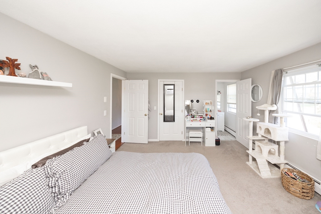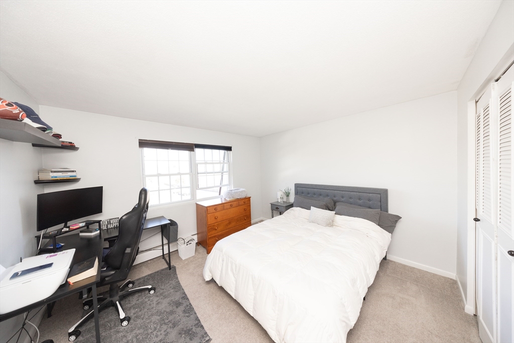 Tenants in place. Limited showings available. Welcome to 24 Williamsburg Court, Unit 21, a beautifully renovated, sun-filled top-floor corner unit overlooking the courtyard. This one-level living condo offers 2 bedrooms and 1.5 baths with tasteful updates throughout. Features include newer windows, doors, a newer slider, and a Trex balcony. The kitchen has newer stainless steel appliances, and the living and dining areas feature newer flooring. The bathroom is updated with tile, a modern vanity, updated lighting, and ceramic flooring. With 1,018 sq ft, the layout is open and comfortable with a spacious living/dining area and well-sized kitchen. The primary bedroom offers a walk-in closet, ensuite half bath, and garden views. The second bedroom has generous closet space and overlooks the pool and courtyard. Includes one deeded parking space. Easy, low-maintenance living in a convenient Shrewsbury location close to shopping, dining, and major routes.
