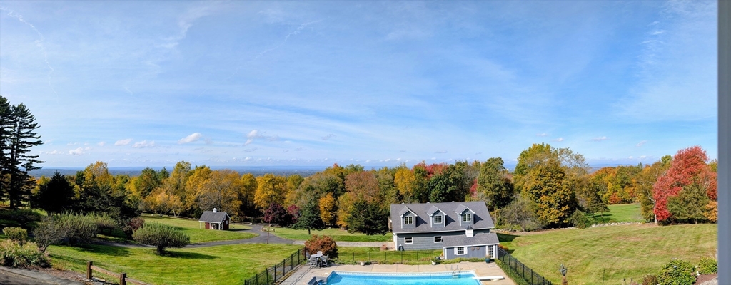 Beautiful Valley Views Atop Wilbraham Mountain. This home offers over 6,000 sq. ft. of well appointed space. Gourmet kitchen , 14 foot island abundant counter space makes cooking and entertaining a joy. Oversized windows in just about every room. Unique Great room with domed ceiling;great for hosting dinner parties, with 2 sets of double doors with stone balcony just outside enjoy the view, oversized arched windows, custom cherry wall unit. Office, The main suite is your sanctuary, stunning views, beveled oak floors,2 large walk-in closets, elegant ensuite bath. Library with soaring ceiling.& wet bar, Formal living rm 2 tray ceilings, fireplace. Center Hall Foyer opens to 2nd flr. custom wrought iron and oak turned staircase, Exquisite crystal chandelier. Private lower level with kitchenette,bedroom and full bath. Inground pool, Pool house, 4 car garage, Stable, Carriage house ,Rare Opportunity large lot /400ft of frontage! create a family compound. Approx 1.5 hrs. to Boston