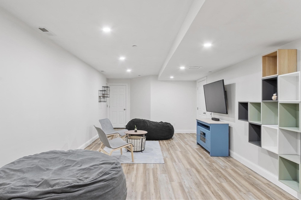 Welcome to Southwood Commons! This beautifully maintained 2022 contemporary home sits on a level, landscaped private lot. The open-concept first floor features hardwood floors, a custom chef’s kitchen with granite countertops, stainless steel appliances, gas cooking, and a large island. The spacious living room with a cozy fireplace flows into the dining area, perfect for entertaining, and opens to a backyard oasis with a patio and cabana. An oversized mudroom offers first-floor laundry, storage, and a half bath. Upstairs, the primary suite includes a walk-in closet and a custom bath with granite counters and a tiled shower. Two additional bedrooms and a full bath complete the level. The finished basement adds flexible space with a bonus room, kitchenette, and full bath. Additional highlights include a two-car garage, central air, and a radon mitigation system, all in a prime location near the elementary school,town center, Highland Commons shopping, and major commuter routes.