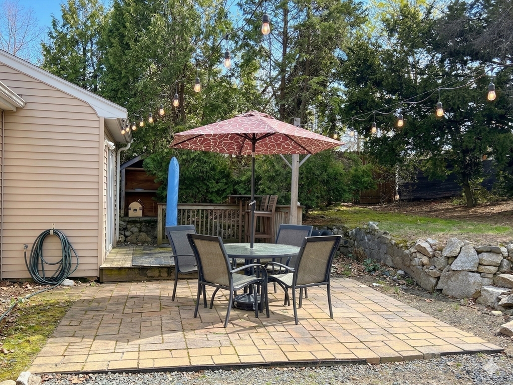 Priced Right! Renovated Cape in desirable quiet neighborhood setting with private fenced yard & wooded lot. Enter the porch & enjoy a wood finished cathedral ceiling & slate floor making a perfect room for enjoying a summer breeze while visiting with friends or reading your favorite book - perfect for a barbecue, it's connected to the wood deck & rear patio. The renovated kitchen has stainless steel appliances, upgraded cabinetry, granite countertops, pantry & breakfast bar. The dining room has convenient built-in wood hutch with ample storage. The open plan living room has a coat closet at the foyer & separate home office/play area, making it a perfect spot for movie night after your daily activities. The second floor bedrooms are spacious, bright & have large closets, each with access to the the attic, making storage of seasonal & holiday items easily accessible. The unfinished basement has a French drain & exterior bulkhead access, making it ready for a workshop or finishing.