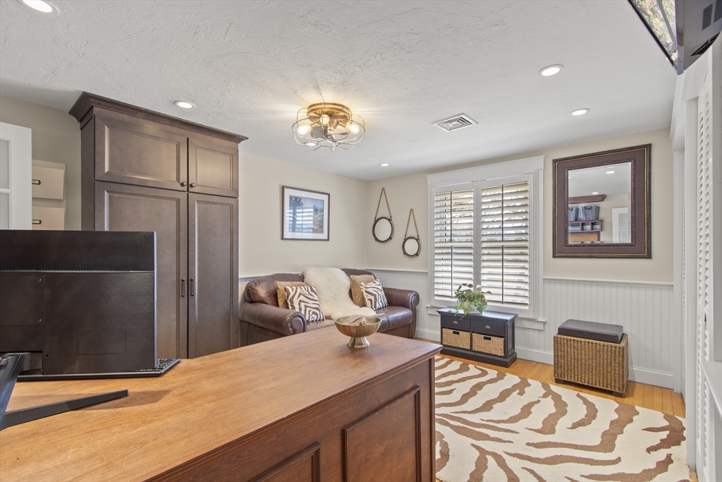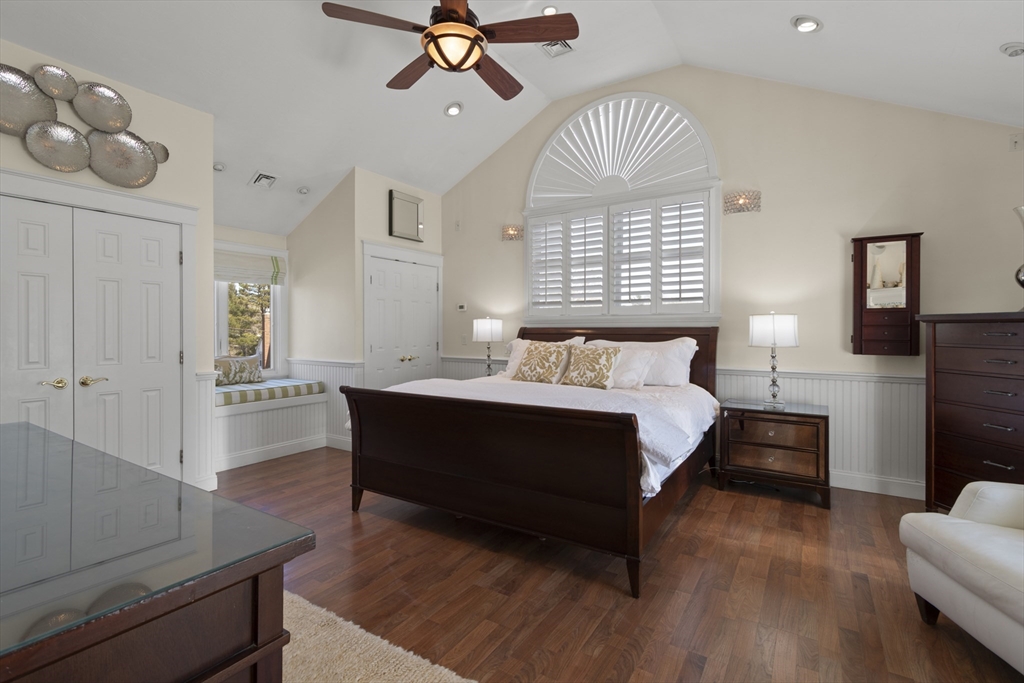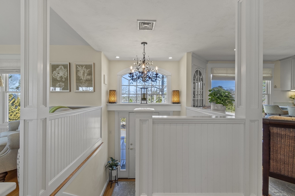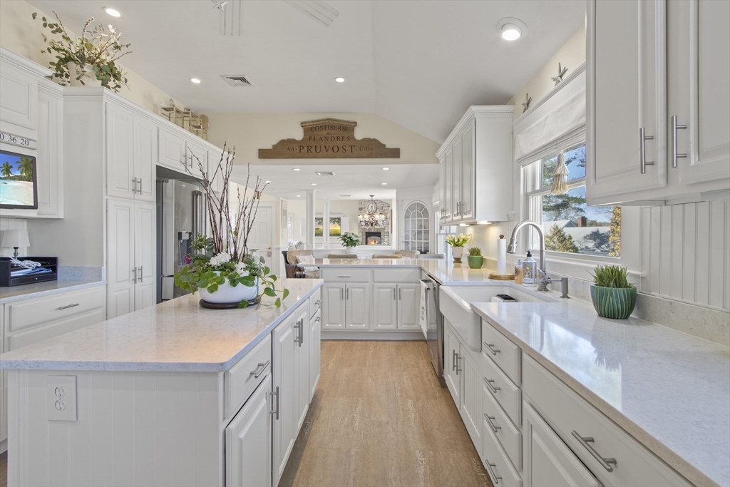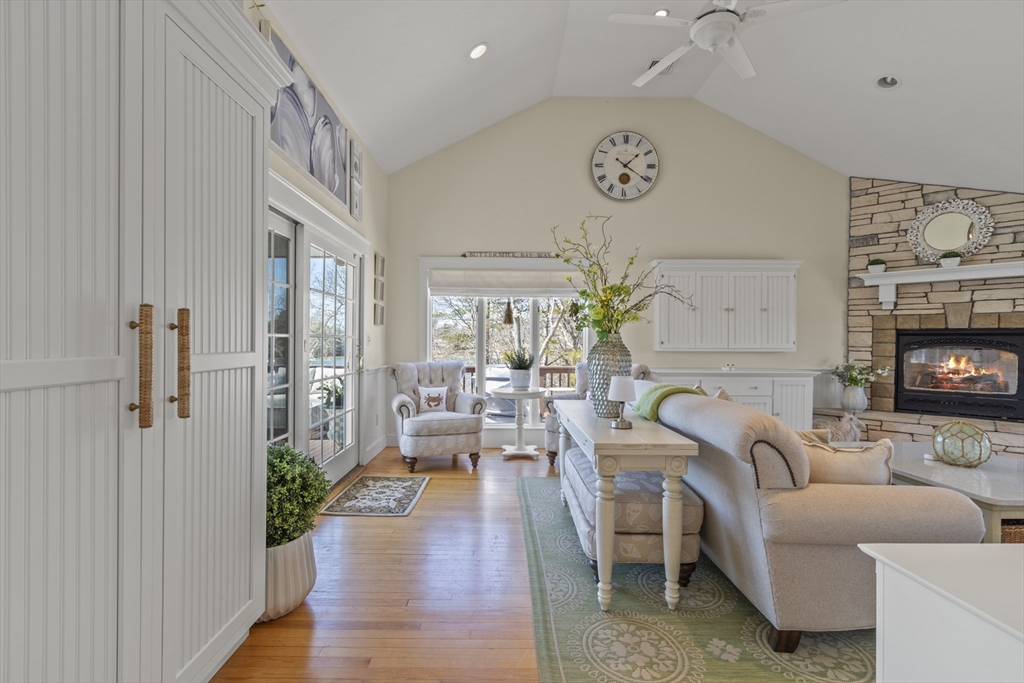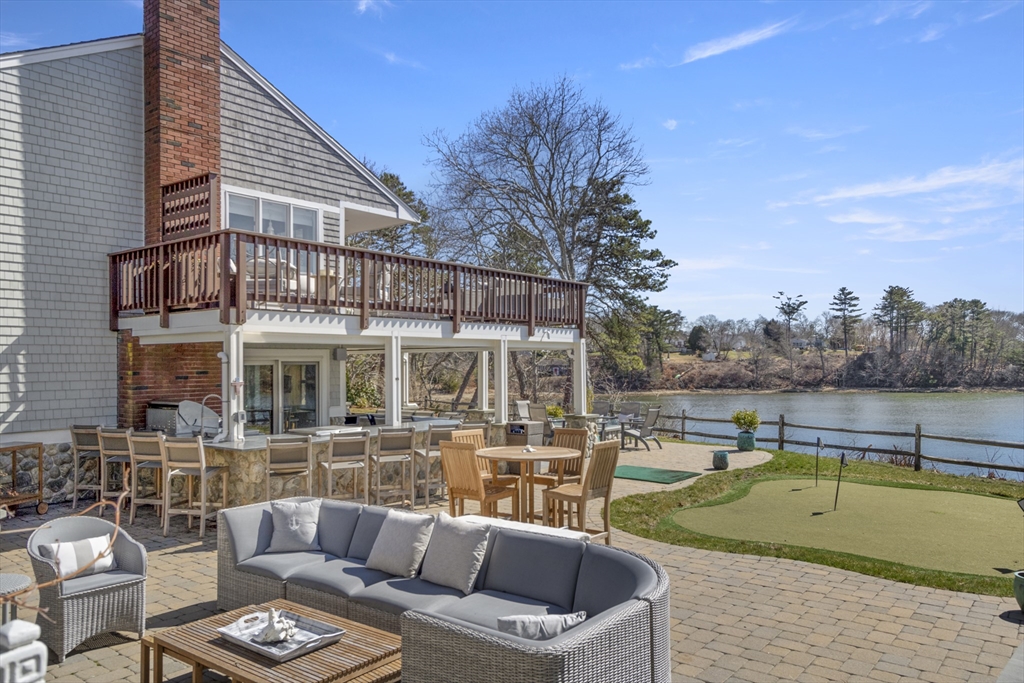 Direct Salt waterfront with No Flood Insurance Needed! Welcome to this elegant, modern Cape Cod home which offers a foundation for aspirational living. Situated on a saltwater peninsula with views from almost every window. Huge gourmet custom-built kitchen with ILVE Majestic gas range, wall oven, hand crafted tile and stove hood. Huge island with breakfast bar and nook, wonderful for entertaining. Custom dining room with vaulted ceiling and wet bar. The living room boasts a gas fireplace as well as a vast wrap around deck with extraordinary views! Main bedroom has cedar closets, washer/dryer, gas fireplace, outdoor Juliet balcony and full bath. This floor also features a second bedroom and a full bath. Bottom level boasts two large bedrooms with full bath. Exercise room, large family room with wood burning fireplace which leads to the extraordinary outdoor living space with full kitchen, natural gas firepit, putting green, outdoor TV and sitting area. This is truly a must-see home!!