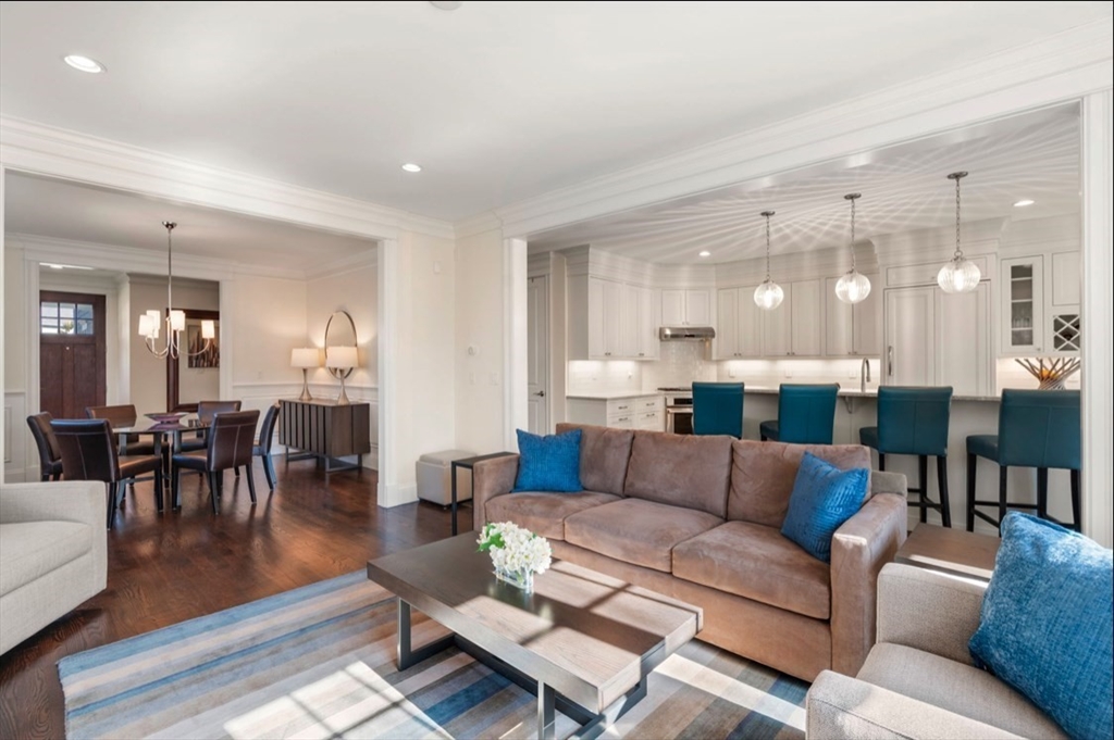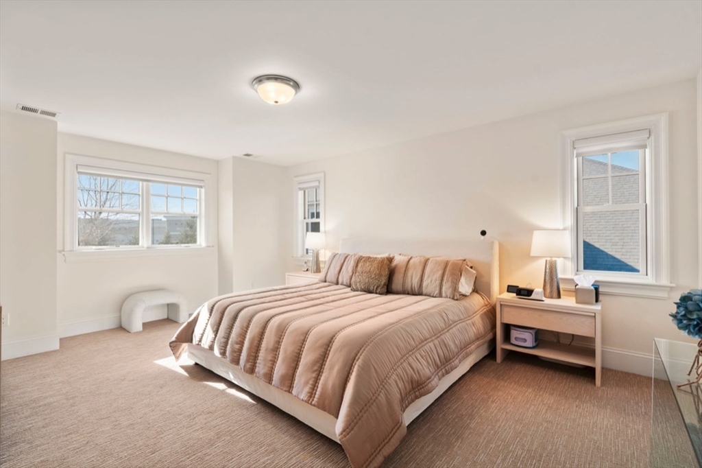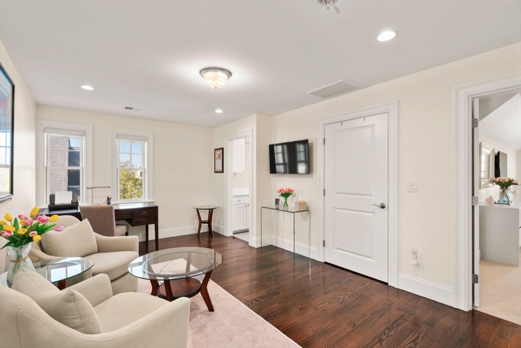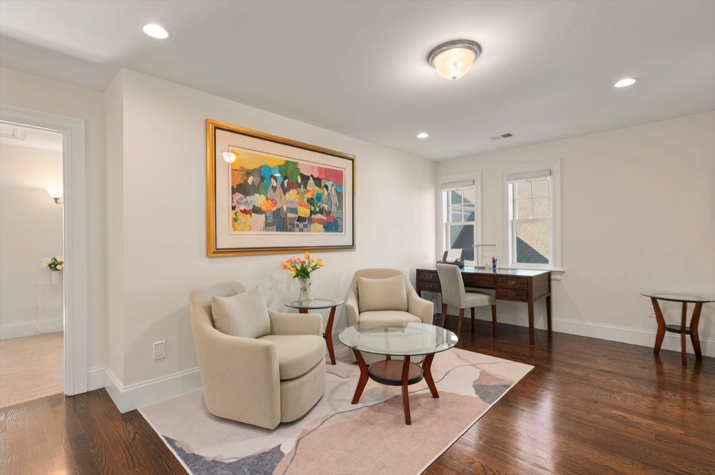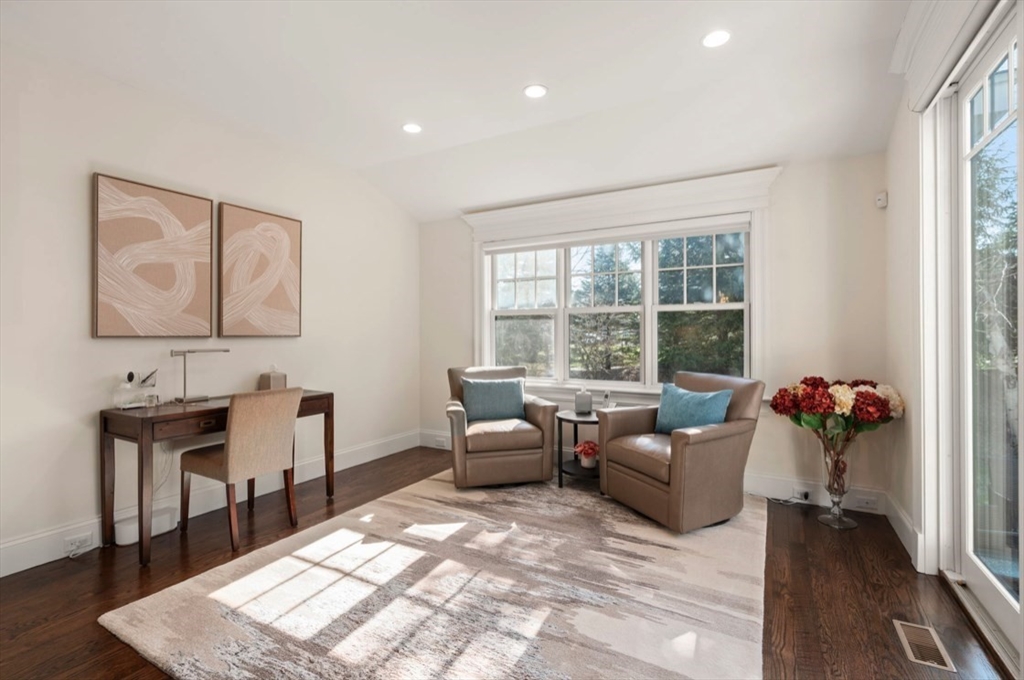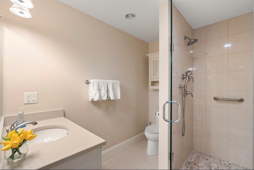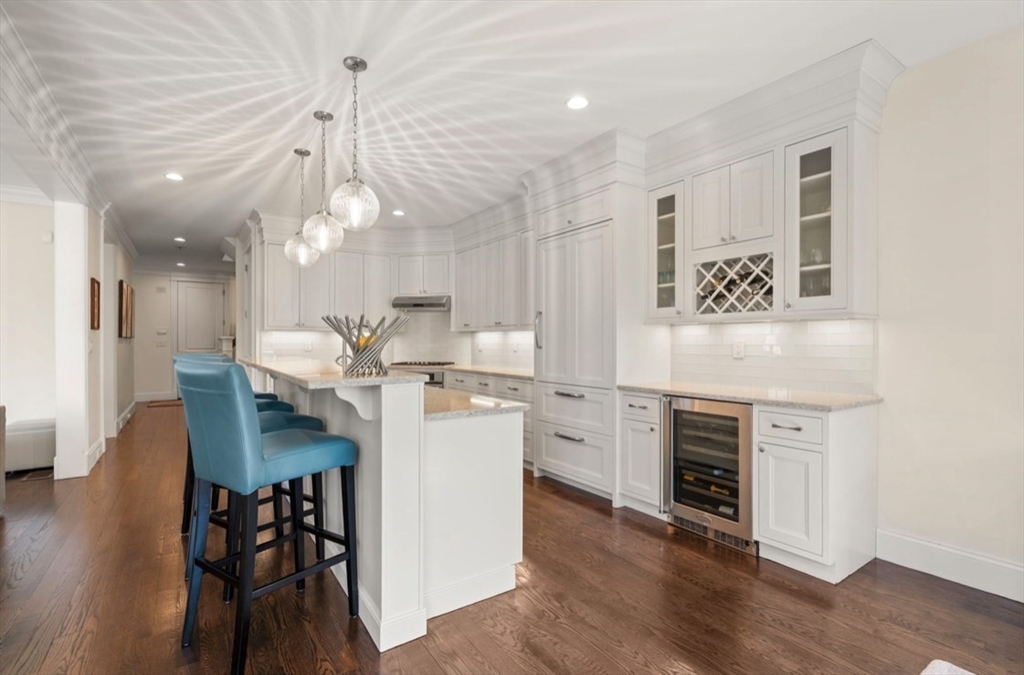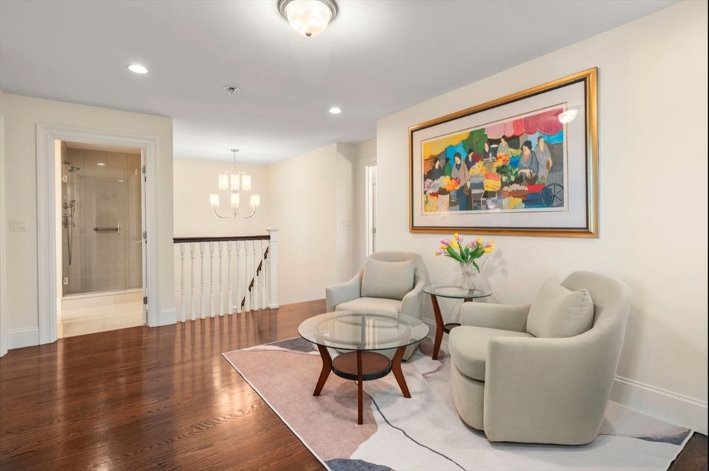 Spectacular Custom Designed River Trail Townhouse. It's all in the details. Expansive 2 bedroom plus, 3.5 bath with the feel of a private home. You enter the sun-filled open concept level with a welcoming foyer, powder bath, designer layout chefs kitchen featuring custom cabinetry, additional bar area with wine refrigerator, Subzero refrigerator, upgraded appliances, large island leading to a casual dining/seating are with direct patio access. Your fireplaced Living Room and formal Dining Room complete this main level. Your second level boast a spacious open office/den/sitting area, laundry Room, large closet/storage space and full bath. The Primary suite features large walk in custom closet with dressing area, ensuite with custom oversized double shower and relaxing sleeping area. The second large bedroom is spacious with a double closet and extra storage. Lower level features full bath, family/exercise room and bedroom/office including large storage closets.