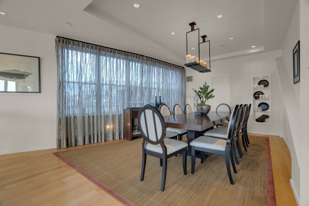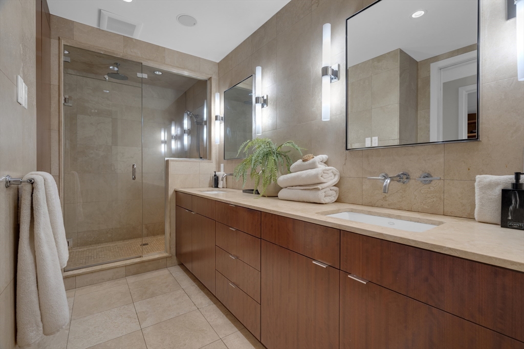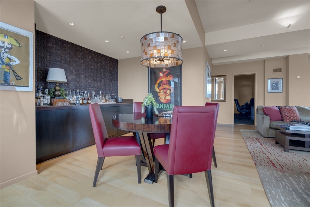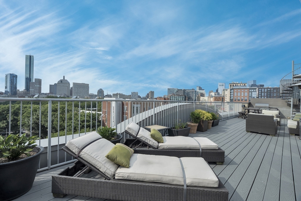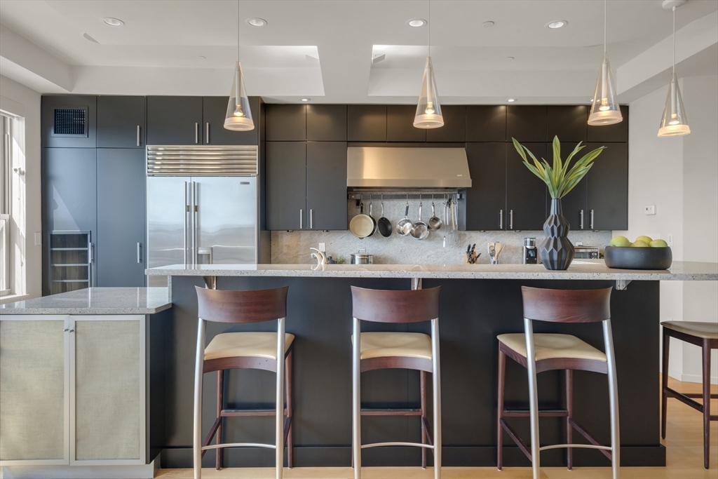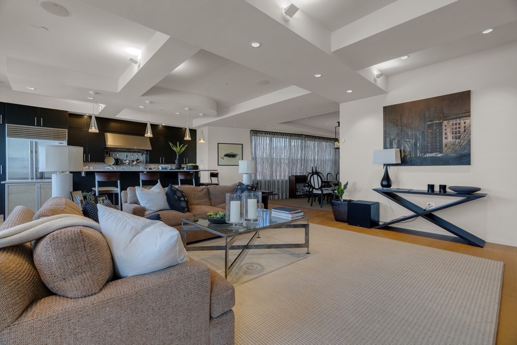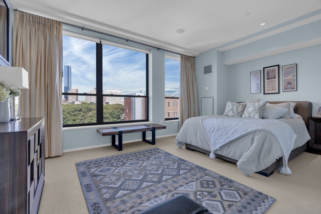 Panoramic skyline views from every corner of this dramatic Gateway Terrace penthouse! Offering 4 BRs and 3 baths, you'll enjoy the finest city lifestyle in this 3800+ sq ft home. Enter to great room with stunning center-island kitchen featuring top-of-the-line stainless steel appliances, ebony cabinets and granite counters. Oversized windows and doors leading to a massive landscaped terrace with hot tub, gas grill and stairs up to private roof top deck. Separate living room with wet bar plus fourth bedroom or media room/golf sim and full bath complete this level. Gorgeous park and city views across the entire front. Downstairs you'll find the primary suite with adjacent office, huge walk-in closet, sparkling en suite bath with double vanity and walk-in shower. Two additional BRs, full bath and laundry room. 3 garage spaces and storage included. Glamorous living in a landmark elevator building steps to Whole Foods and all the shopping and fine restaurants the South End has to offer.