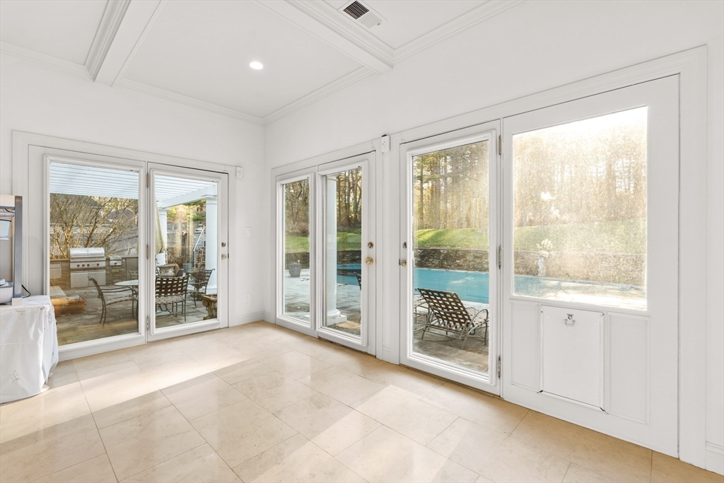Set on a coveted cul-de-sac on one of Needham’s most prestigious streets, this beautifully maintained home offers the perfect blend of elegance, comfort, and lifestyle. The inviting foyer opens to an updated kitchen, formal dining room, and a spacious living room with custom built-ins. A warm and inviting office with fireplace and a coffered-ceiling family room with wall-to-wall built-ins create ideal everyday living spaces. French doors lead to a versatile room overlooking the backyard oasis, complete with an in-ground pool. The serene primary suite features a sitting area and expansive walk-in closets. A finished lower level, third-floor bonus space, three-car garage, and circular driveway complete this exceptional offering. A must see!