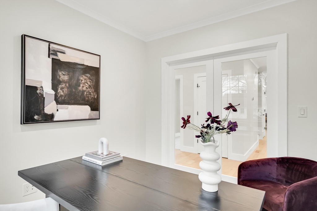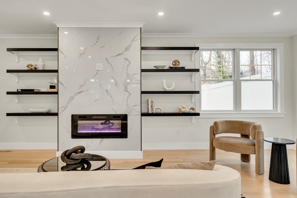 Sun-filled new construction in an exceptionally convenient location, just a short walk to the elementary, middle, and high schools, Lincoln Field, and Cary Library. This spacious home offers 4 bedrooms and 5 baths with a bright, open floor plan ideal for modern living. The chef’s kitchen with professional-grade appliances opens to a large family room with fireplace and French doors to the deck. The main level also includes a living room, formal dining room, private office with French doors, and a full bath. Upstairs features four en-suite bedrooms, including a stunning primary suite with a generous walk-in closet and spa-like bath. The finished lower level provides exceptional bonus space with a huge recreation room and full bath. A rare combination of light, space, and walk-to-everything convenience in a sought-after location.