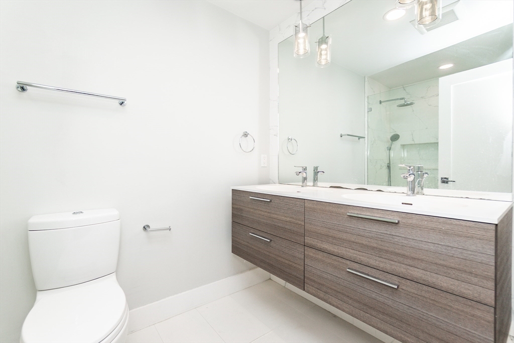Welcome to 39 A St. Third Floor Corner 2 bedroom, 2 bathroom residence with private outdoor space and one garage parking space. Kitchen features include custom designed Italian cabinets with Thermador appliances, waterfall quartz countertops with an oversized island and direct hood venting. The spa-like bathrooms feature floating vanities, radiant floors, linear drains and beautiful tiled showers. Unit features include large windows, hardwood flooring throughout, in unit washer / dryer , tank-less water heater, custom closets, automatic window treatments, nest thermostats, surround sound with a state of the art Smart Home Technology. Professionally managed, controlled access, elevator building with garage parking. One Block from the Broadway T stop, located within one of Boston most exciting neighborhoods where South Boston, Seaport, and South end meet. Easy access to 90/93, Whole Foods, restaurants, shops and cafes.