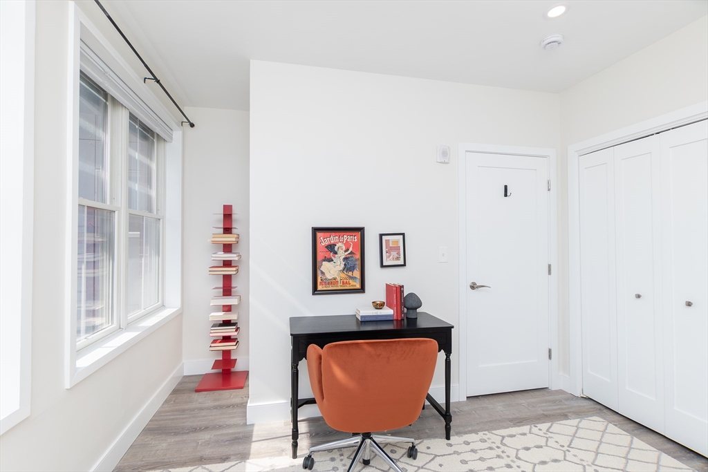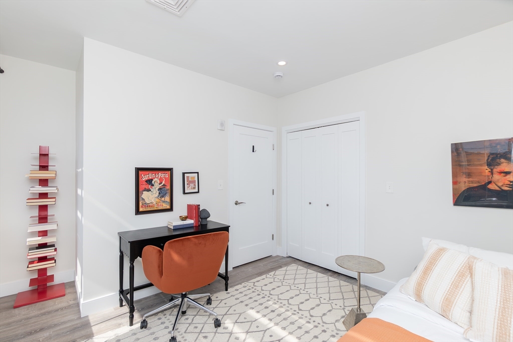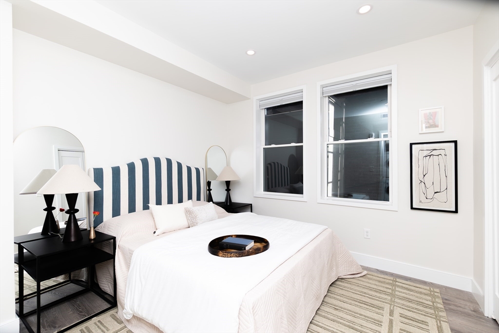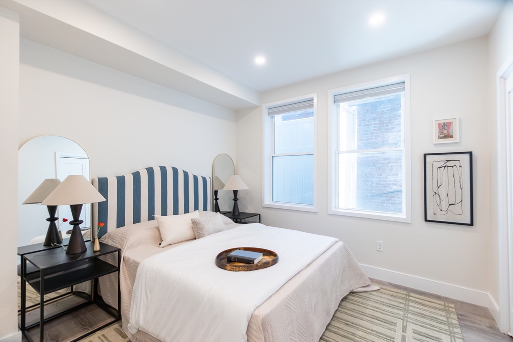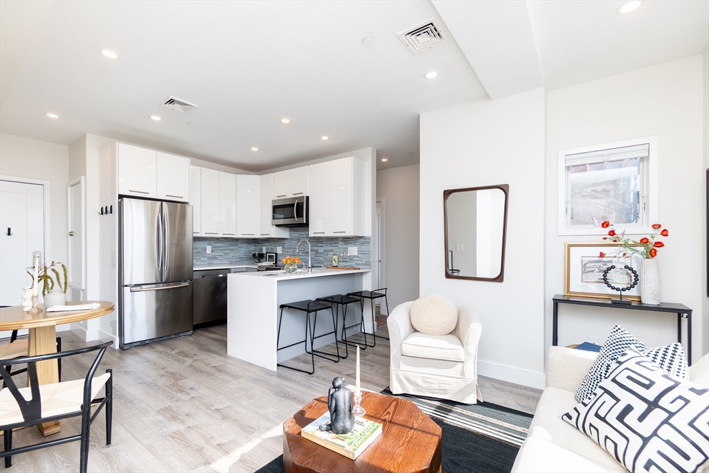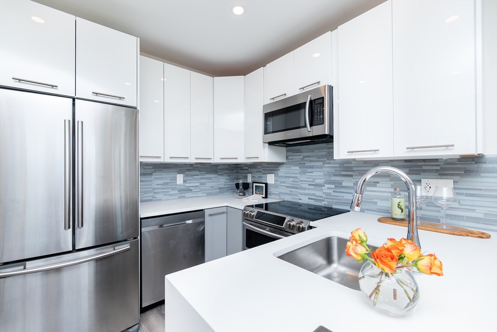 Entrench yourself in a boutique elevator building w/ garage parking at the gateway of Jeffries Point and bordering the Greenway. 70 Bremen St (2018) is a notable address w/ 32 units; Unit 201 offers a well-sized 746 SF layout w/ 2 BR, 1 BA, overlooking the Greenway & featuring a window-filled living space that floods the space w/ natural light. Alcove kitchen include Samsung stainless steel appliances, waterfall quartz breakfast bar & convenient entry closet. Both bedrooms provide ample closet space & accommodate queen beds; hallway w/ in-unit laundry. Spacious bath w/ custom shower completes the modern aesthetic. HW Flooring and central heat/ AC. Enjoy close proximity to the Maverick MBTA, harbor-front dining, parks & activities, plus ~10 min commute to downtown. Prof managed association w/ lobby space, mail/package area & deeded garage parking (#12) included. Condo fee includes heat and hot water!