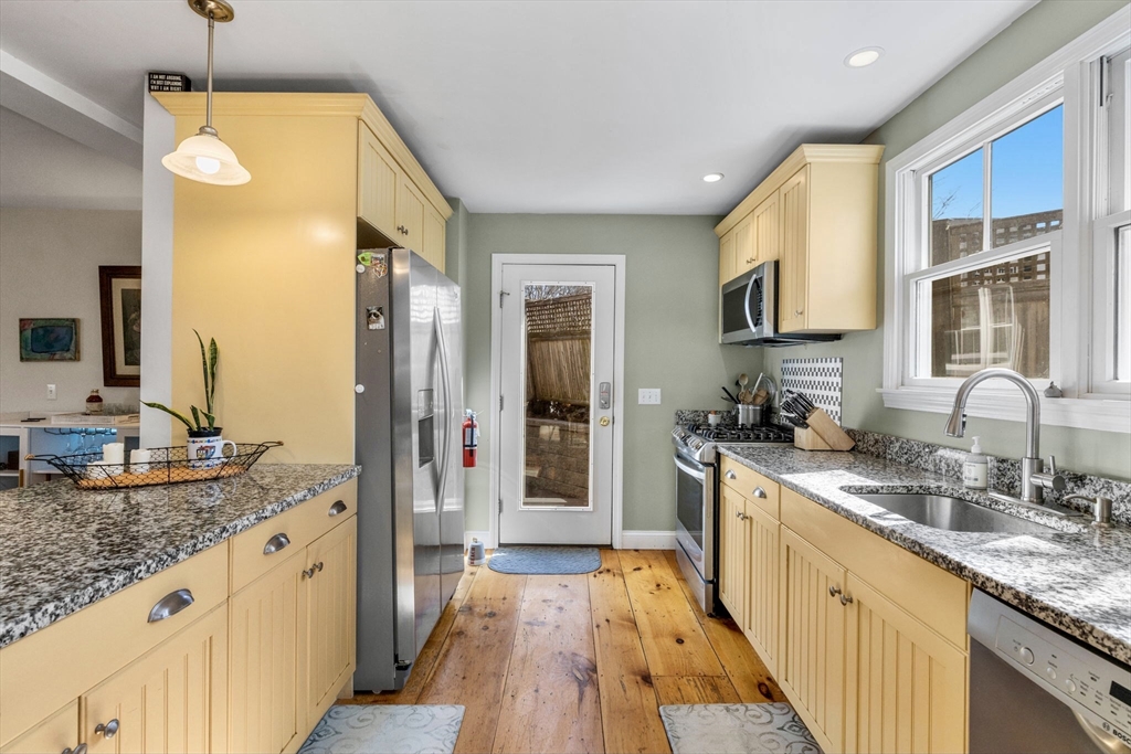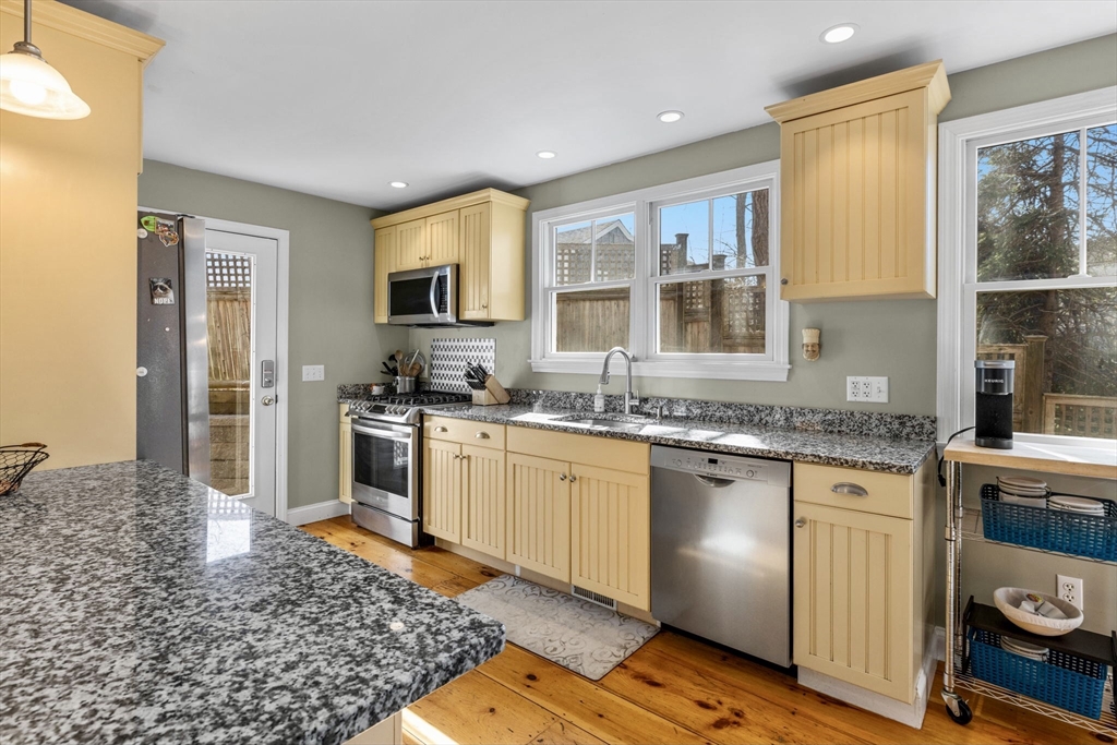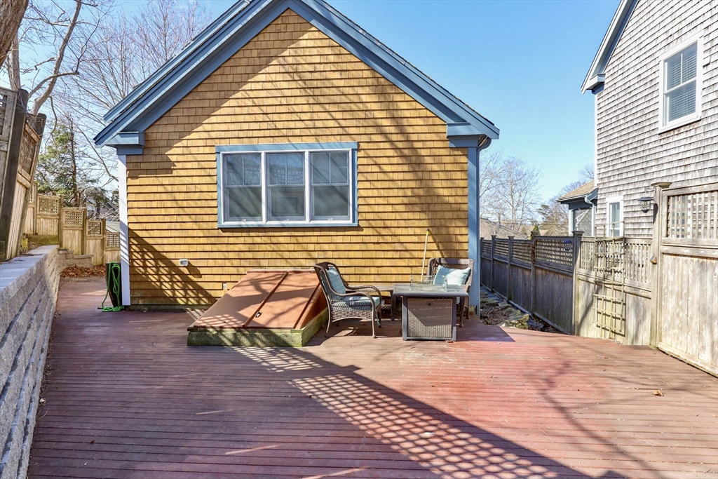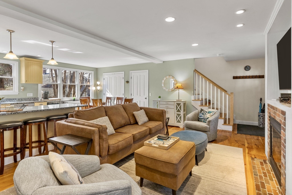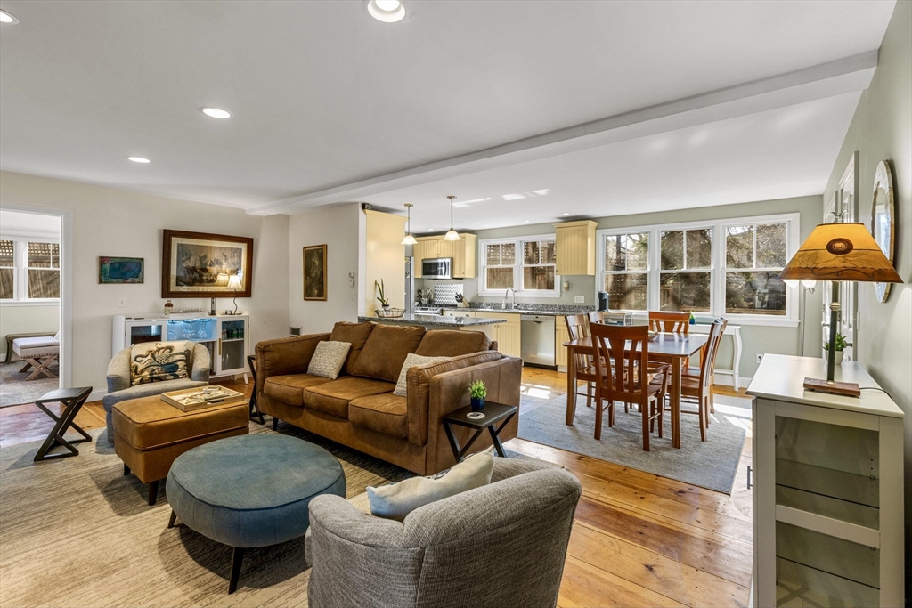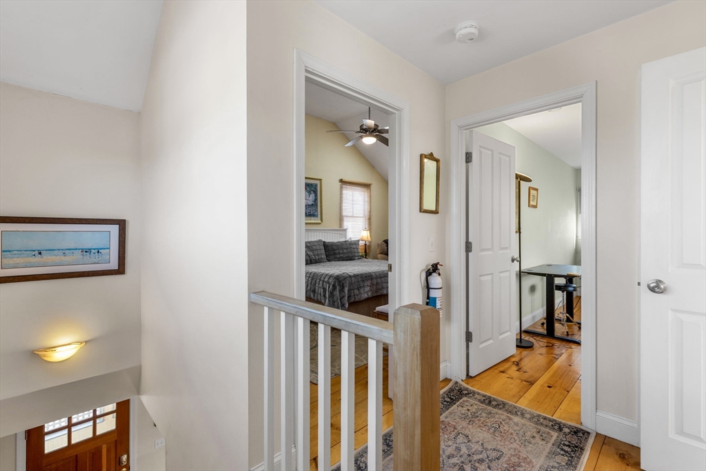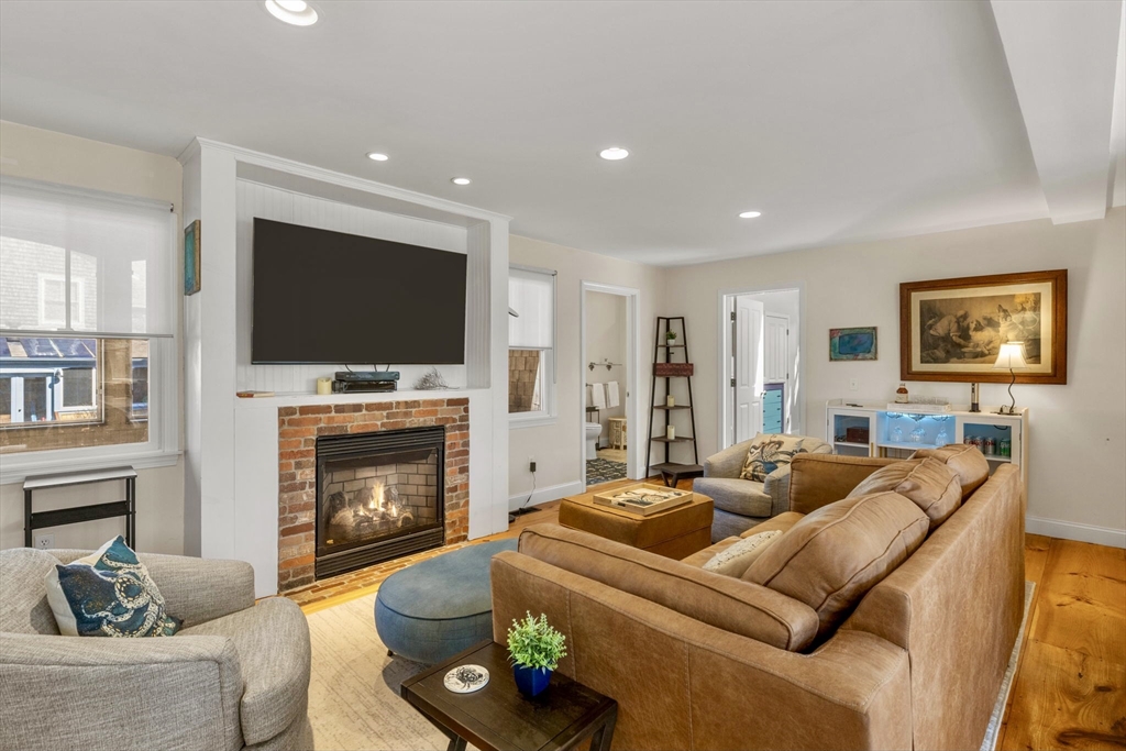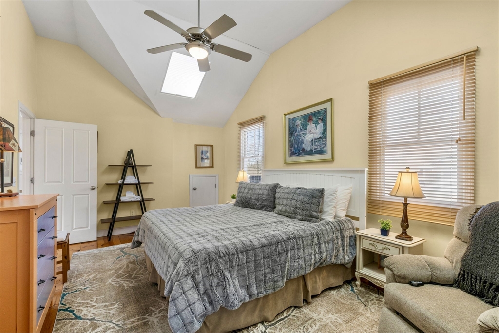 This charming Provincetown home blends warmth, character, and comfort. An enclosed wraparound porch invites you in, leading to wide-plank pine floors and a classic brick propane fireplace that creates a cozy living space. Tucked on a quiet, lightly traveled road just minutes from town, it offers both privacy and convenience. The first floor features an open-concept layout with a spacious dining area and a thoughtfully designed kitchen. The rear primary bedroom is a peaceful retreat with a vaulted ceiling and skylight, plus a large bath accessible from both the bedroom and main living area. Upstairs offers a generous guest bedroom with vaulted ceilings, an additional bedroom, and a shared full bath. The fully insulated basement, with interior and exterior access, includes utilities, laundry, workout space, and expansion potential. A private deck off the kitchen is perfect for entertaining, while the side yard provides green space and off-street parking.