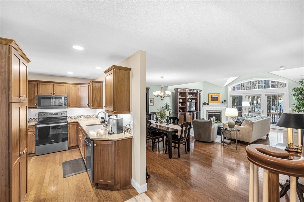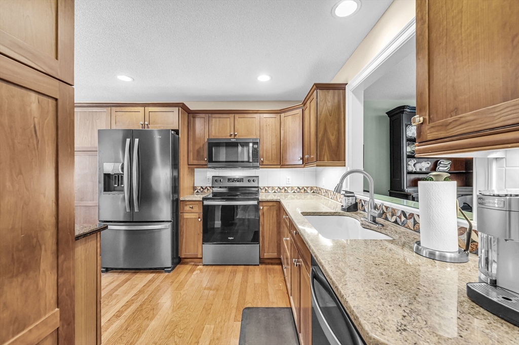 Welcome to Elms Residential, where thoughtful design meets everyday comfort in this spacious 1,660 square foot townhouse condominium, freshly painted throughout. Enjoy the privacy of a first-floor primary suite w/ custom walk-in closet, updated private bathroom and screened porch access, along with a bright dine-in kitchen boasting elegant cherry wood cabinetry. Entertain with ease in the open living/dining room combo, warmed by a cozy gas fireplace and illuminated by Atrium French doors leading to your rear yard. Flexible living continues upstairs with a versatile loft perfect for office or family room, plus a generously sized second bedroom and full bath. Below is a partially finished living area suitable for a workshop, home gym and/or recreation room, and has a separate exterior entrance. All combined, with first-floor laundry, two-car attached garage, and no age restrictions, this inviting home offers the ideal blend of convenience and style for today’s discerning condo buyer.