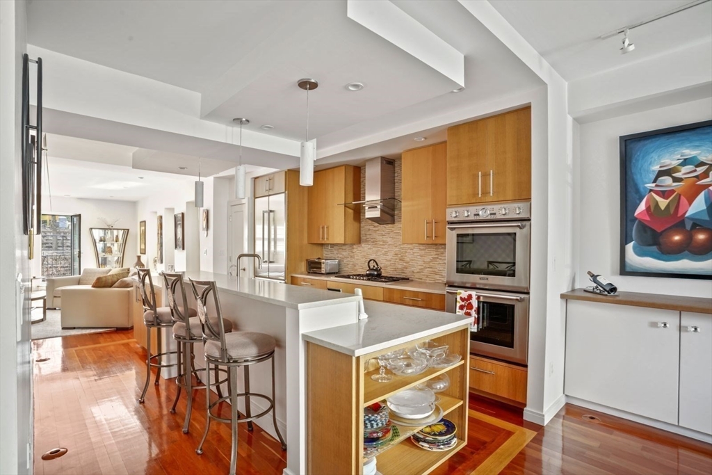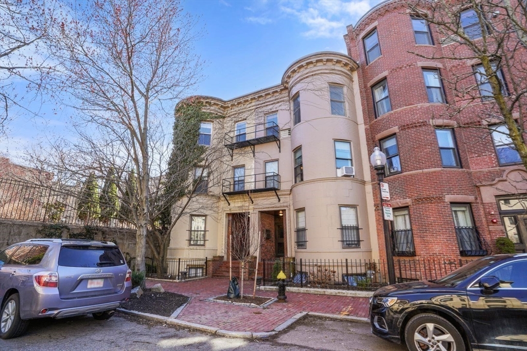 Exceptional Value in St. Botolph! This sleekly renovated 2 Bedroom plus Den, 2.5 Bathroom parlor duplex (1,634 sq ft) w parking, offers every amenity for modern living. Located where Back Bay meets South End, it's just steps from the MBTA Symphony Hall and Pru Center.The cook’s dream kitchen features stunning quartz countertops, a new sink and faucets, and a stylish backsplash. Enjoy Thermador appliances, including double wall ovens and a gas cooktop vented to the outside, plus a built bar for entertaining. The spacious living area opens to a sunny deck, a cozy frpl in dining area and a half bath. Downstairs, the king-size master suite boasts enhanced lighting, a walk-in closet, and a spa-style bath with Grohe fixtures. The second bathroom has a new linen closet and direct entry to 2nd bedrm . The spacious den can potentially become a 3rd bedrm.This wonderful home has cherry floors, central air, upgraded alarm system and pet-friendly & direct access to parking. Quite dead end street