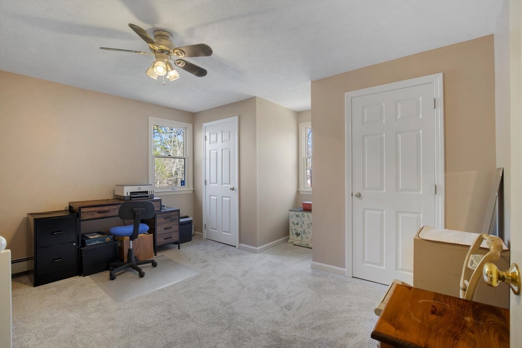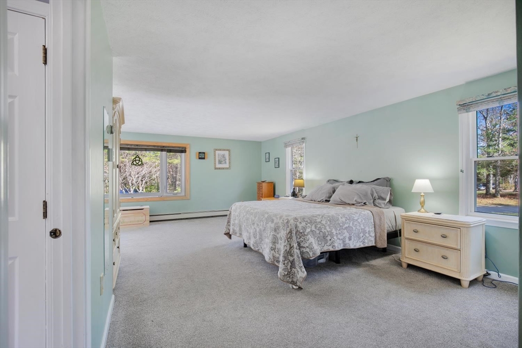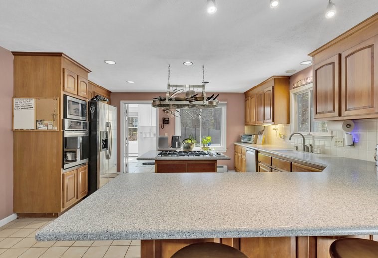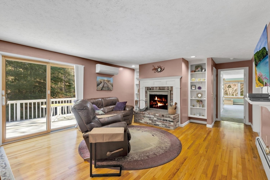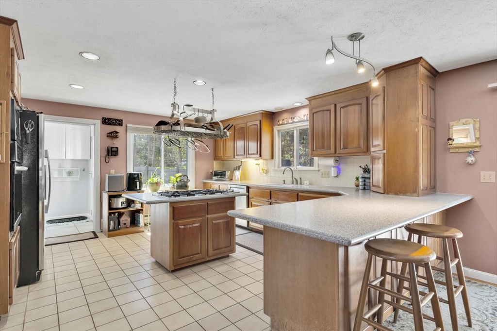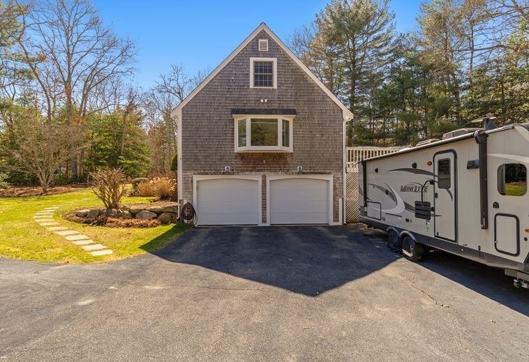 Located in the highly desirable Pimlico Pond Estates in Sandwich, this spacious 3,200+ sq. ft. Gambrel-style home sits gracefully on nearly an acre of beautifully landscaped land. The heart of the home is the well-appointed kitchen, featuring rich cherry cabinetry, Corian countertops, a professional-grade cooktop, and tile flooring--perfectly opening to a warm and inviting fireplaced family room with custom built-ins. Designed with flexibility in mind, the floor plan offers a sought-after first-floor primary suite complete with a private bath, oversized whirlpool tub, separate shower, and skylight for natural light. The second level provides four additional rooms, ideal for bedrooms, home office space, or guests. Step outside to enjoy the expansive deck that spans the length of the home, accessible from the primary bedroom, family room, and mudroom--perfect for entertaining or relaxing while overlooking the lush yard filled with mature perennials. Don't miss it!