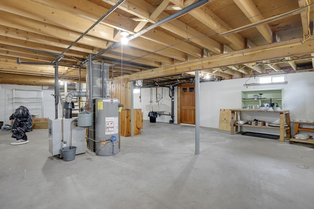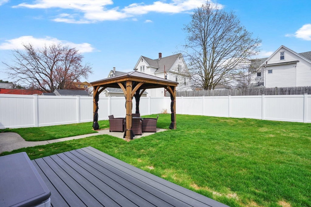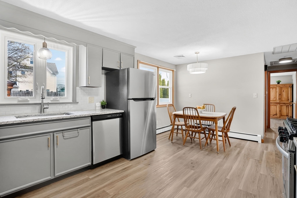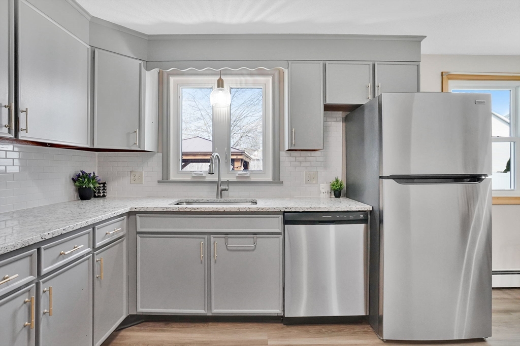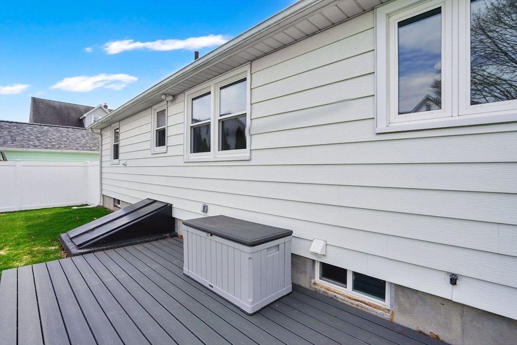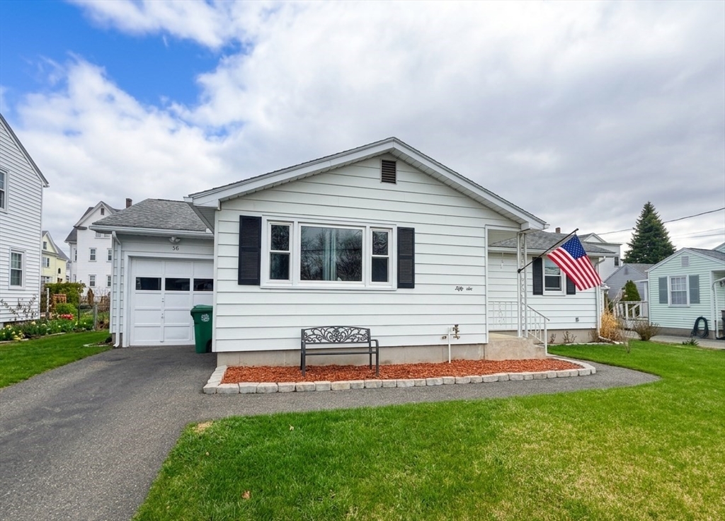 Highest and Best Offer Deadline:Monday, April 20 at 12:00 PM (noon).56 Thaddeus is updated and move-in ready, with vinyl flooring, new windows, granite countertops, stainless steel appliances, gas stove, tiled backsplash, and a refinished bathroom with walk-in shower and new vanity. The washer and dryer are located on the first floor, with basement hookups remaining.Mechanicals include forced hot air gas heat, central air, Utica gas boiler, 100-amp panel, Rain Bird sprinkler system, and a gas water heater.The yard is level and fully fenced, featuring a composite deck and pergola — perfect for entertaining or relaxing on summer days. A shed and one-car attached garage add convenience.The clean, dry basement with hatchway access offers a blank slate for a future playroom, home gym, media space, or other living area.
