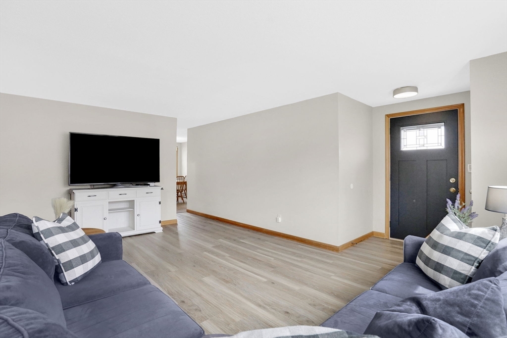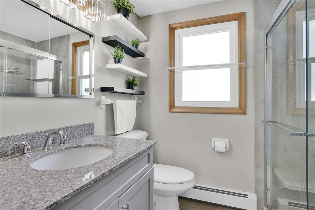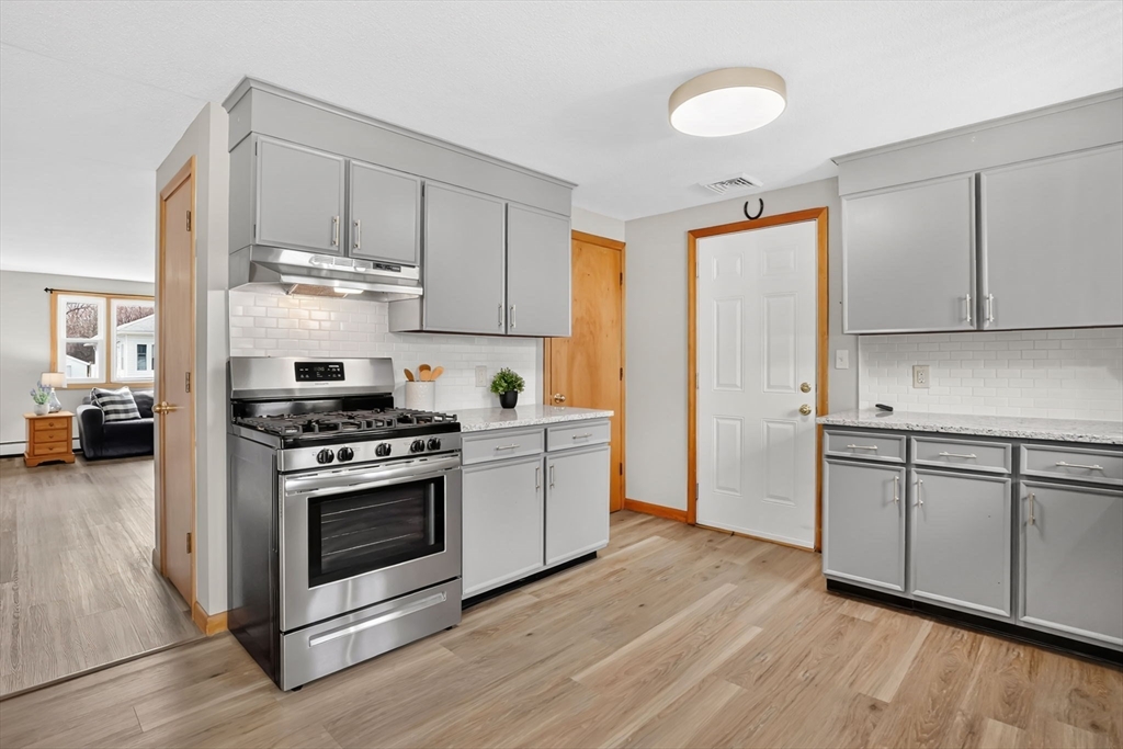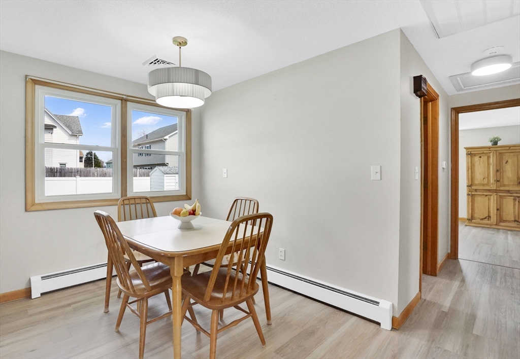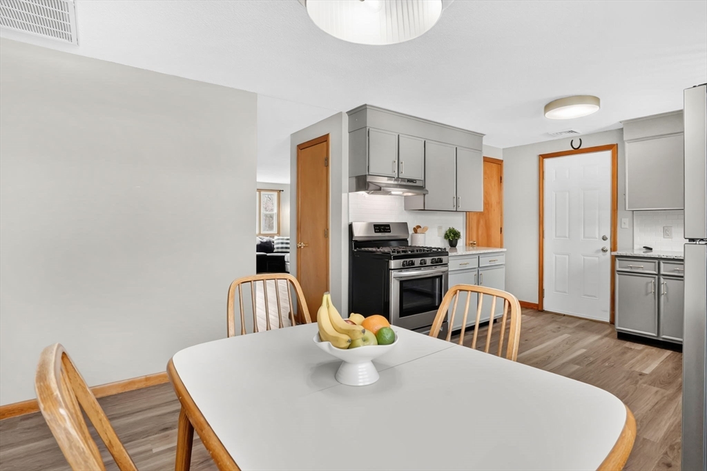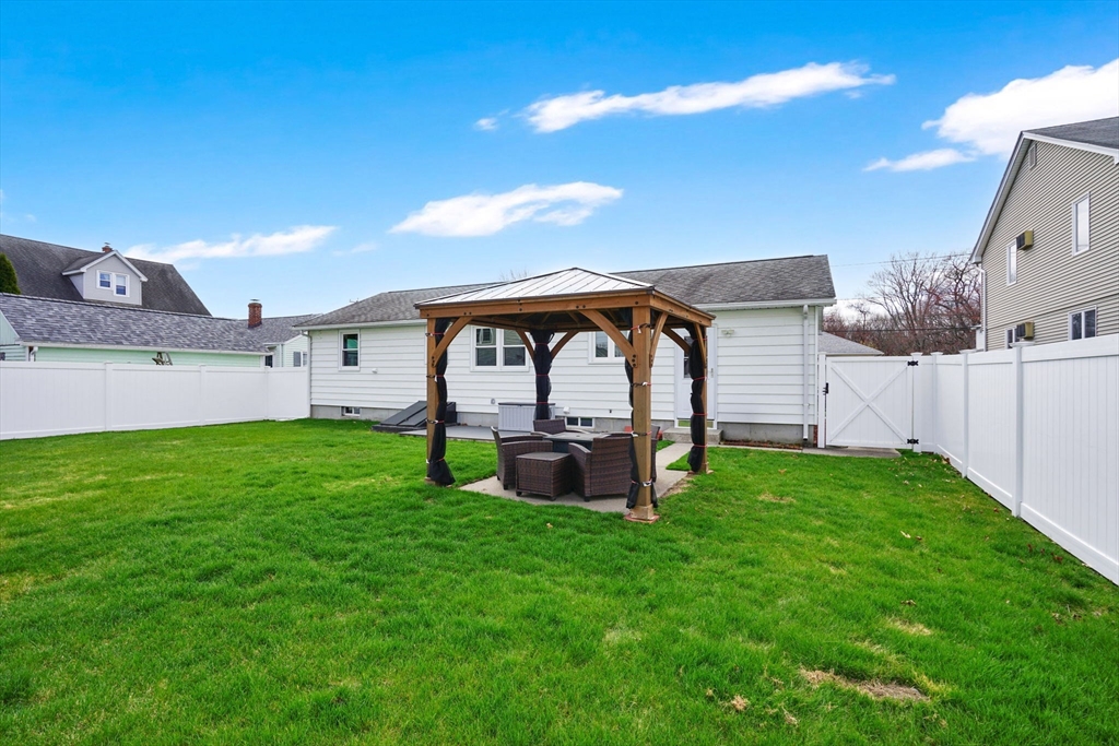 Highest and Best Offer Deadline:Monday, April 20 at 12:00 PM (noon).56 Thaddeus is updated and move-in ready, with vinyl flooring, new windows, granite countertops, stainless steel appliances, gas stove, tiled backsplash, and a refinished bathroom with walk-in shower and new vanity. The washer and dryer are located on the first floor, with basement hookups remaining.Mechanicals include forced hot air gas heat, central air, Utica gas boiler, 100-amp panel, Rain Bird sprinkler system, and a gas water heater.The yard is level and fully fenced, featuring a composite deck and pergola — perfect for entertaining or relaxing on summer days. A shed and one-car attached garage add convenience.The clean, dry basement with hatchway access offers a blank slate for a future playroom, home gym, media space, or other living area.
