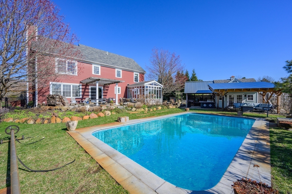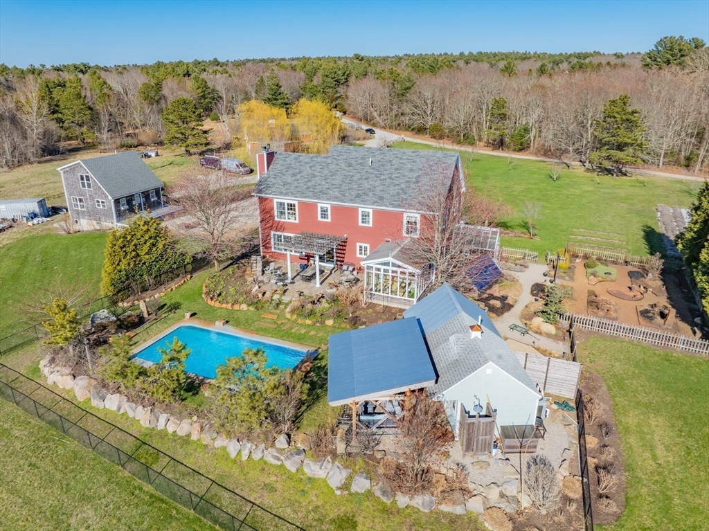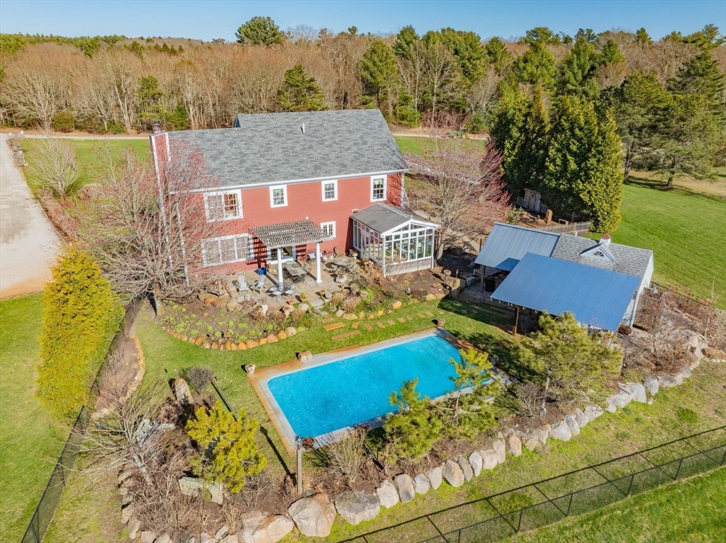 Welcome to Stone Pony Gardens, a stunning 2 parcel lot consisting of a 24.5-acre estate set on Everett Cove Point on the Westport River, offering rare privacy and a potential buildable lot. This beautifully designed home features over 2,600 SF of living space with high-end finishes throughout. Home features 4 bedrooms, 2 full and 2 half baths, exceptional entertaining spaces, sunroom and a bonus space in the basement. (Floor plans attached). A separate annex building being used as a home office and studio apartment, offering flexible living options included. Outside, enjoy a resort-like setting with an in-ground saltwater pool, pool house, outdoor kitchen, and meditation garden. Equestrian amenities include a 3-stall horse barn with tack room. The grounds are truly special with scenic walking trails, a brook, weeping willows, greenhouse, lavender fields, 200+ rose bushes, fruit trees, a chicken coop, peacock tower, and rabbit house—an extraordinary property blending luxury and nature.