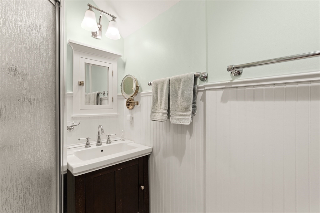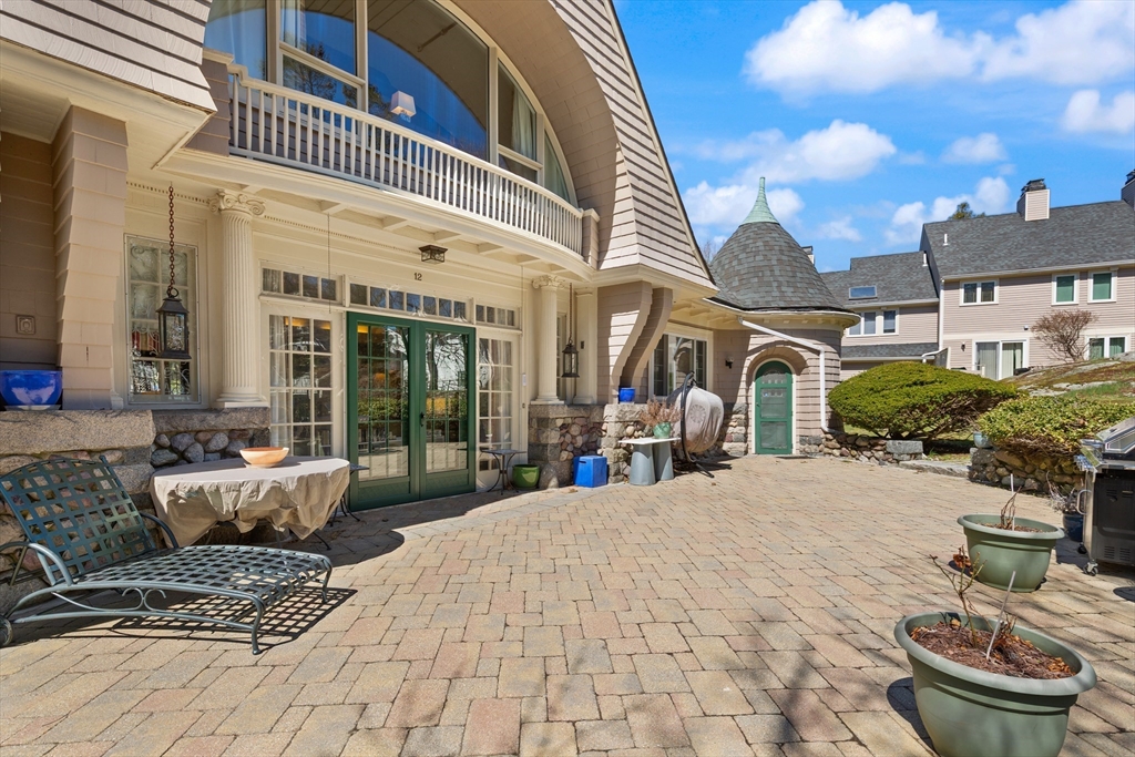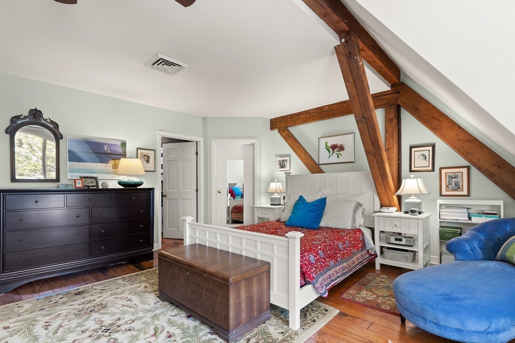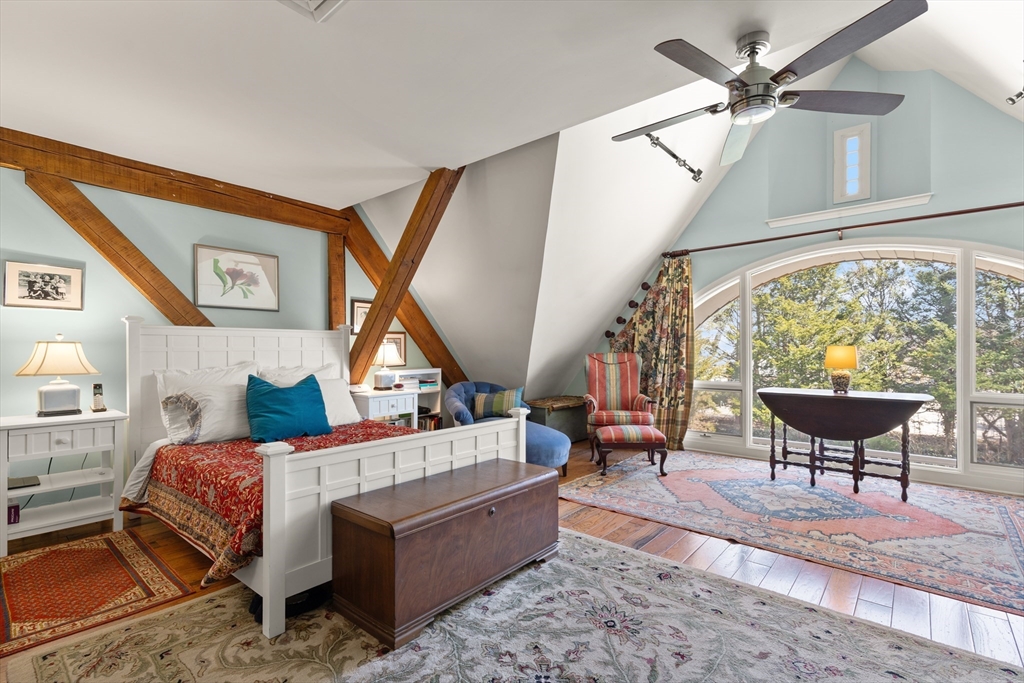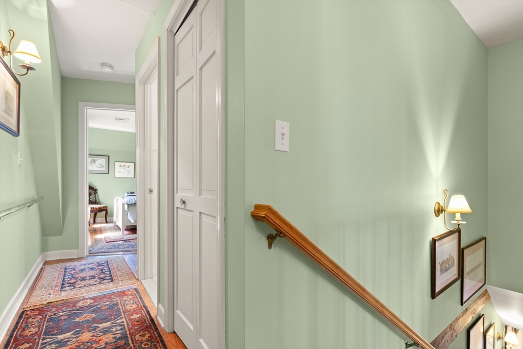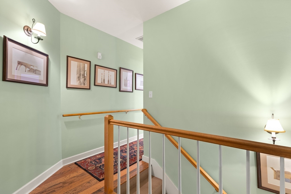 Showstopping Townhome that seamlessly blends History, Style, and Modern Comfort! Originally a historic Carriage House, this exceptional residence has been thoughtfully transformed, preserving its timeless post-and-beam character while offering today’s most desired conveniences. Step inside to soaring ceilings, hardwood floors, elegant French doors, and an open floor plan designed for modern living. The renovated kitchen features crisp white cabinetry, quartz countertops, and direct access to a private balcony—perfect for morning coffee or evening unwinding. Upstairs offers two spacious bedrooms, including a sun-filled primary suite with high ceilings and a dramatic arched window overlooking the patio and garden below. A remodeled, tiled bath with walk-in shower completes the second level.The finished lower level adds flexible bonus living space along with a laundry area. Deeded parking includes a 1 car garage and an additional parking space, plus ample guest parking.