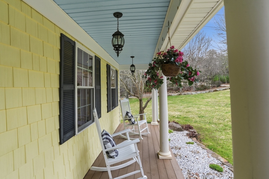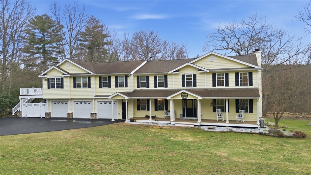 Near a quiet cul-de-sac off Ten Rod Rd, w/access to nature conservancy land, this spacious property offers privacy, flexibility, & room to spread out.A classic farmer’s porch welcomes you into the main home, where a functional layout supports easy entertaining.The granite & SS kitchen anchors the home & opens to a large rear deck, while flowing into the fireplaced family room, formal dining room, & living room. A nearby laundry rm provides convenient access to the garage & flex living space. Upstairs, the primary suite includes a walk-in shower & an oversized walk-in closet. Three additional bedrooms & a full bath complete the second floor. The private guest suite offers its own entrance & includes a granite kitchen, dining area, living room, full bath, 2-bedrooms, & sliders leading to a large private deck, and the finished walkout lower level adds more versitile living space. All set on nearly 13 acres of tranquility, with a lg workshop/barn, stream and multiple outbuildings.