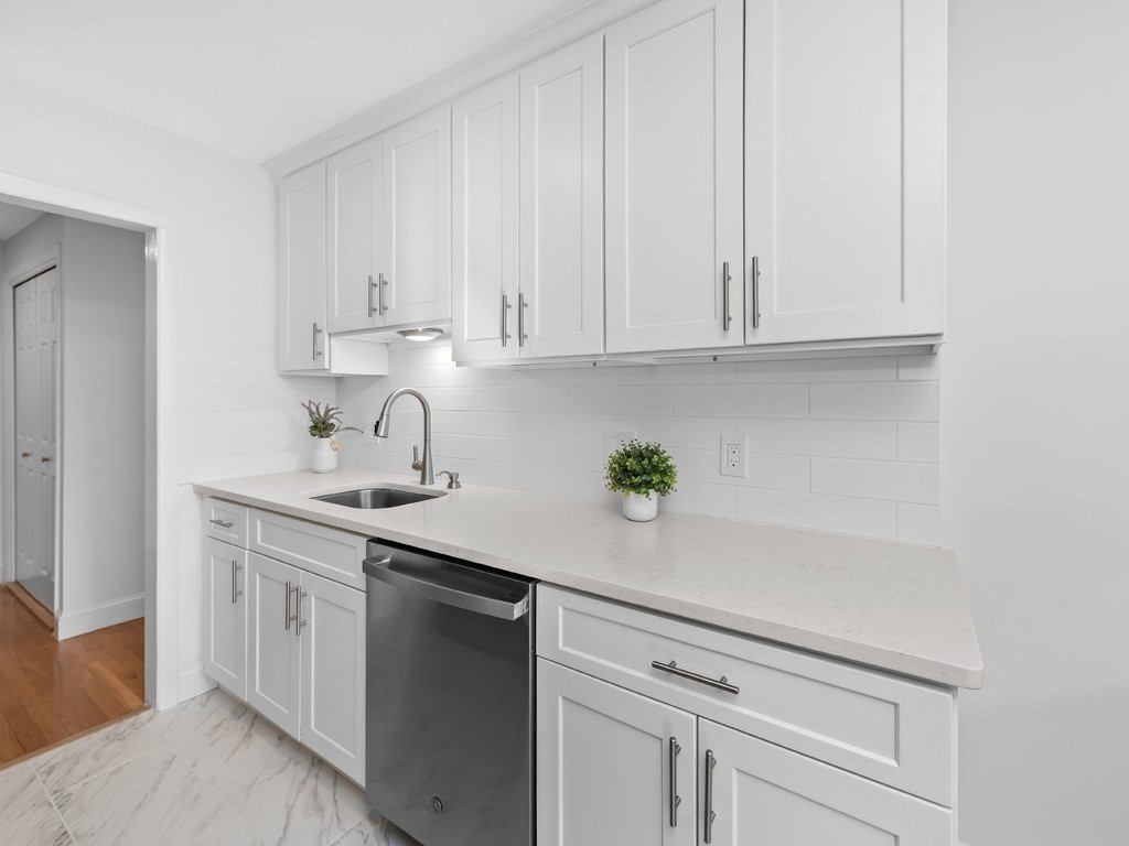Available Now! Stunning 1BR Condo in Coolidge Corner. Brand-new luxury renovations! Located in an elevator building with central air conditioning, this gorgeous condo features an ideal layout. The elegant eat-in kitchen features high-end stainless steel appliances, quartz countertops, a stylish backsplash, and soft-close white Shaker cabinets. The fully renovated bathroom offers sleek tile and a modern vanity. Enjoy a bright, south-facing living and dining area along with a spacious bedroom, complete with a custom built-in double closet. Rent includes heat and hot water. One parking spot is available for an additional $150/month. This professionally managed building offers on-site laundry and is perfectly situated near the Green Line "C" stop, Trader Joe’s, and the Longwood Medical Area, with easy access to downtown Boston.