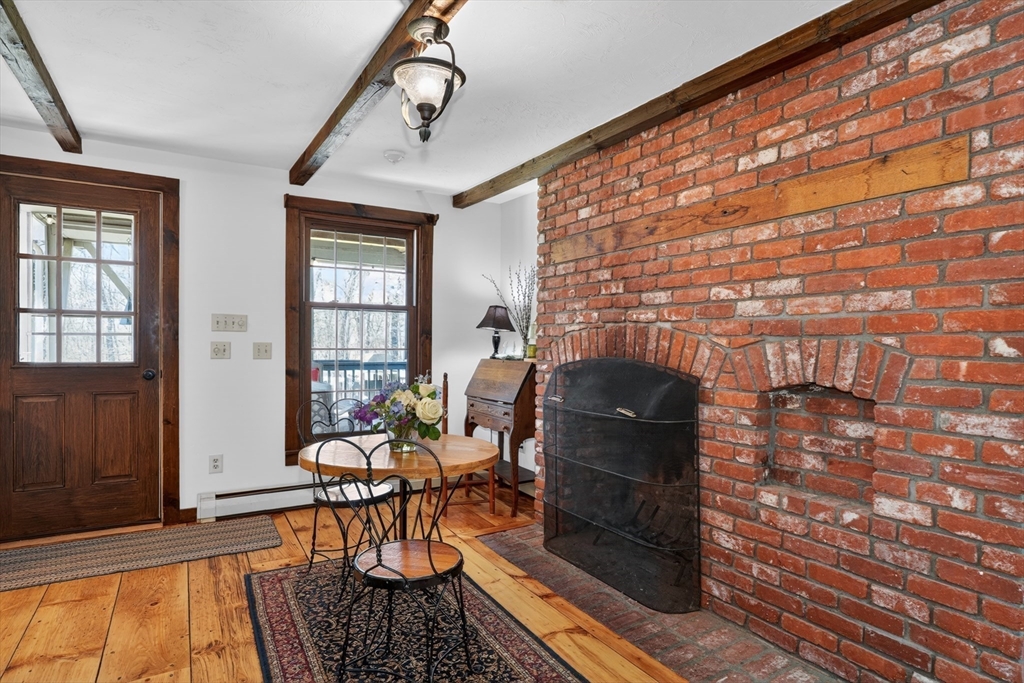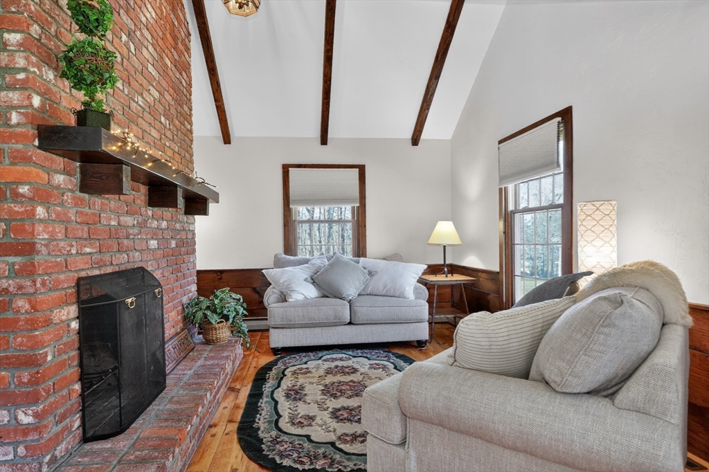 Tucked away on a peaceful dead-end street near the Town Center, this stunning Saltbox Colonial offers the perfect blend of charm, character, and modern comfort—set across from Grafton Conservation Land for added privacy and natural beauty. Step inside and fall in love with the warmth of beautifully refinished wide pine floors, striking floor-to-ceiling brick fireplaces, and timeless wooden beams that create an inviting, rustic elegance throughout. The thoughtfully designed layout features a front-to-back dining room and a gorgeous family room with a fireplace—perfect for entertaining year-round. Elegant, lofted primary bedroom offers a peaceful retreat complete with a private balcony, alongside two additional bedrooms and a full bath. Wonderful oversized 3- season porch and spacious deck—ideal for gatherings, or simply relaxing while overlooking picturesque backyard.Two-car detached garage with exciting ADU potential, fresh interior paint and much more!