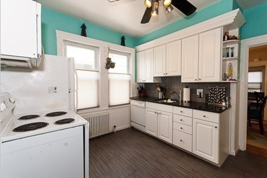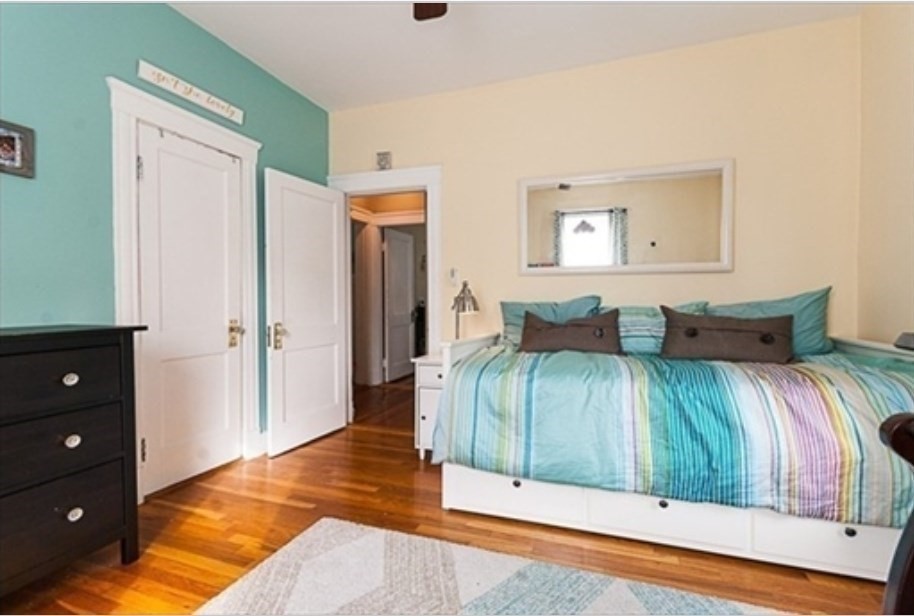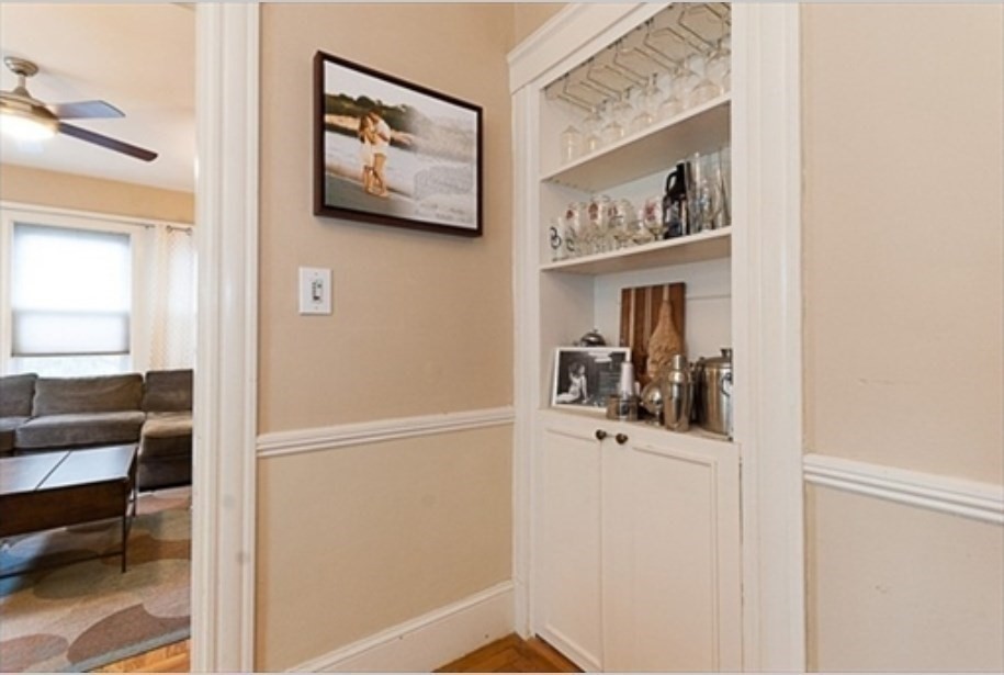 LOCATION IS KEY! Located a four minute walk to the commuter rail and seven minutes to Main St with tons of shops and restaurants this well maintained home has a lot to offer. Door to door to N.Station in 20 mins, five minutes to I-93! Efficient heating system. Recently renovated kitchen with granite countertops, dishwasher, disposal and ceiling fan, one covered parking spot included, large pantry, hardwood floors throughout, Living room and dining room, large bedrooms (master has a walk-in), front and back porch, yard to BBQ, basement storage. No pets please.