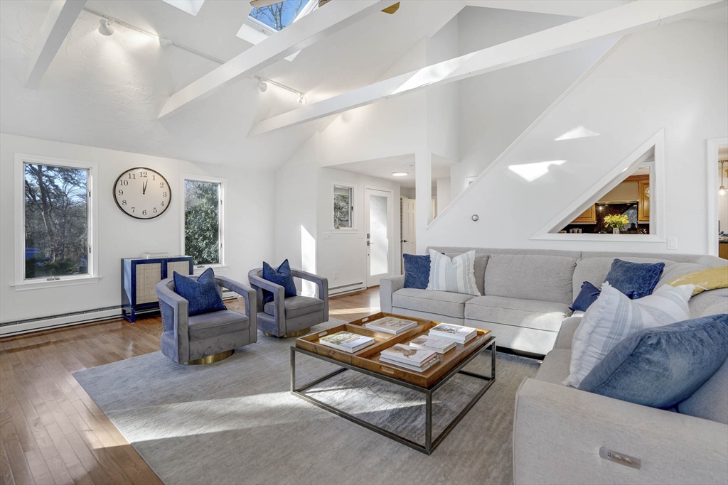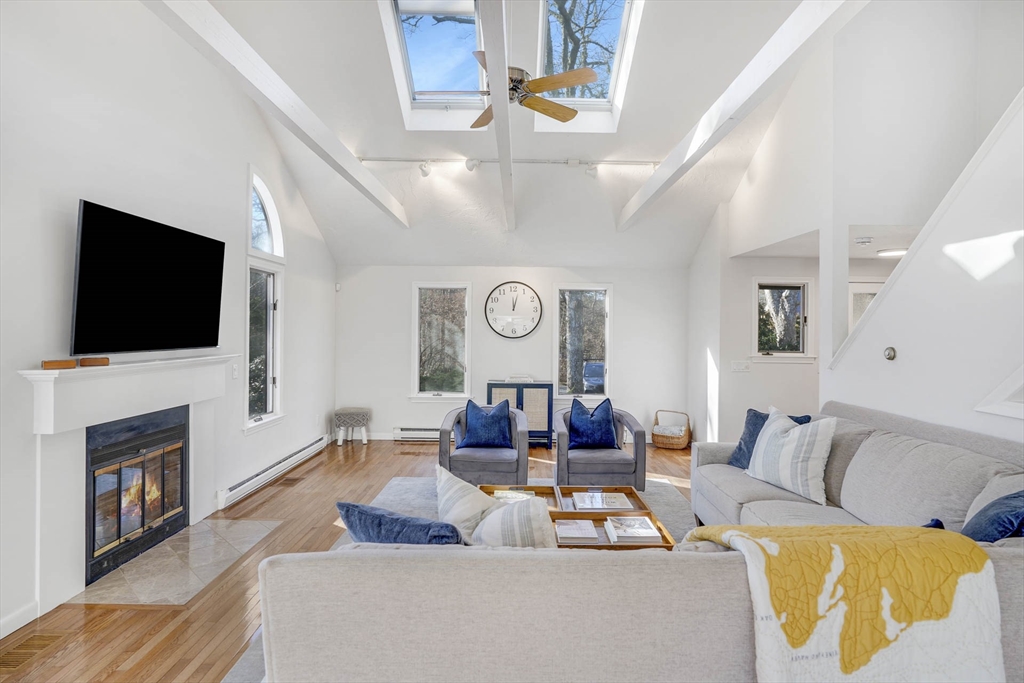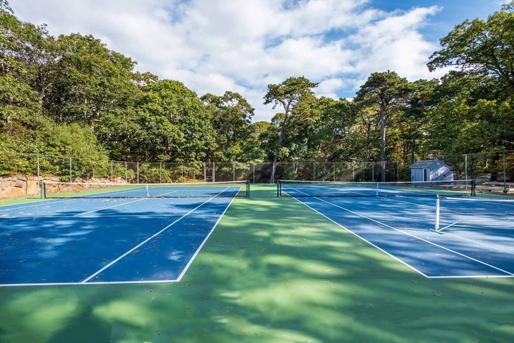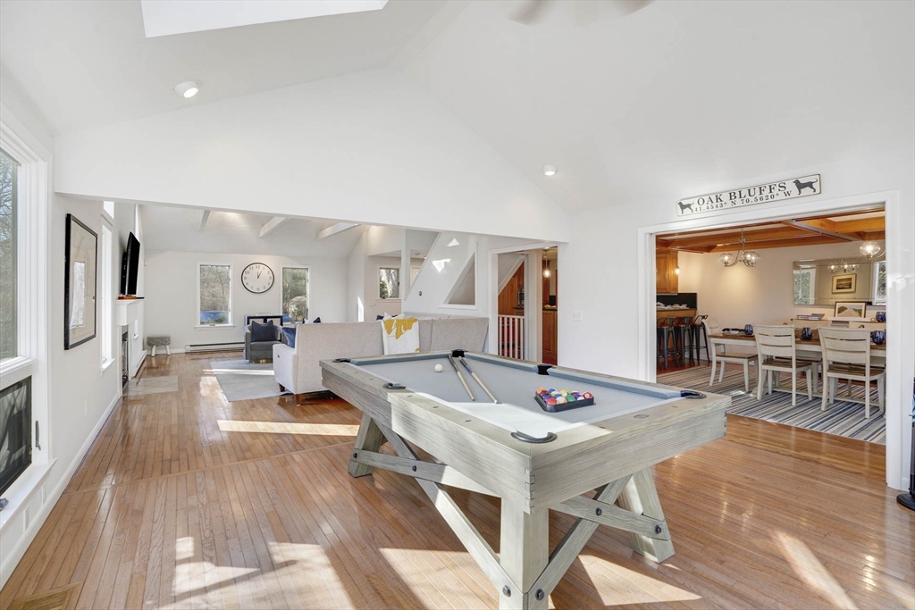Hidden Cove Gem with Serene Pond Views And Coveted Water Access - Located in the desirable Hidden Cove enclave—a 65+ acre water-access community—this inviting contemporary home offers privacy and high-end finishes with direct access to Sengekontacket Pond and Nantucket Sound. Community amenities include a private boat dock, walking trails, pickleball and tennis, all near Oak Bluffs. The sun-filled interior features a living room with vaulted ceilings, a wood-burning fireplace, and floor-to-ceiling windows. The chef’s kitchen is appointed with stone countertops and Dacor® appliances. The second-floor primary suite boasts a private balcony with pond views and a stylish en suite bath. The garden level provides additional bedrooms and a bonus space with a Murphy bed. Outside, enjoy a bluestone terrace and two levels of decks overlooking a private yard. This move-in-ready home is offered fully furnished with over $80,000 in 2026 summer rental income already secured.