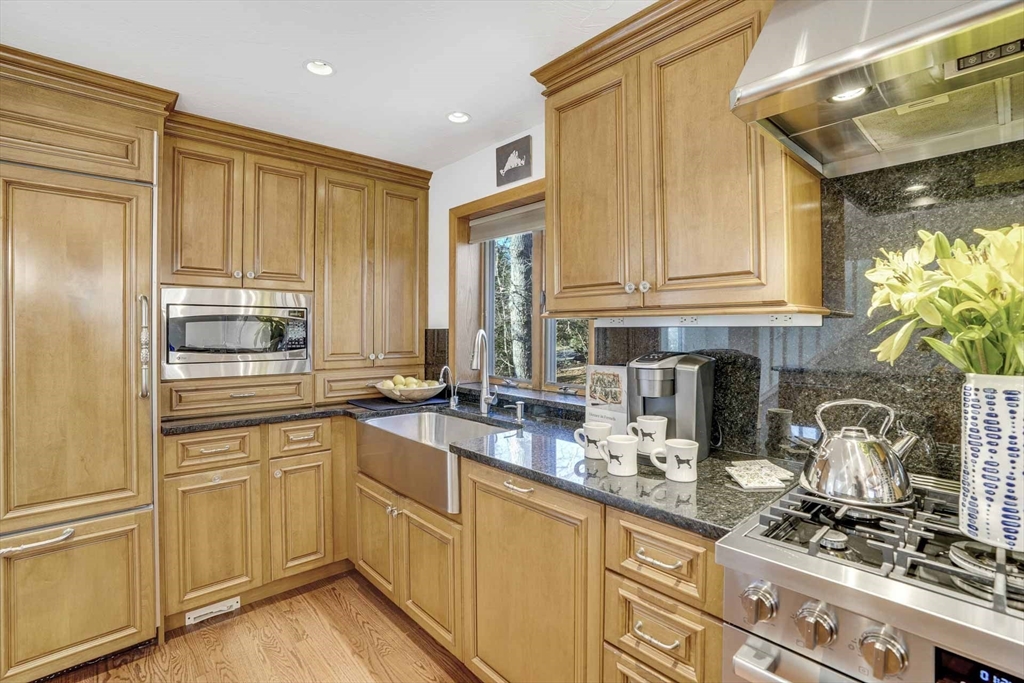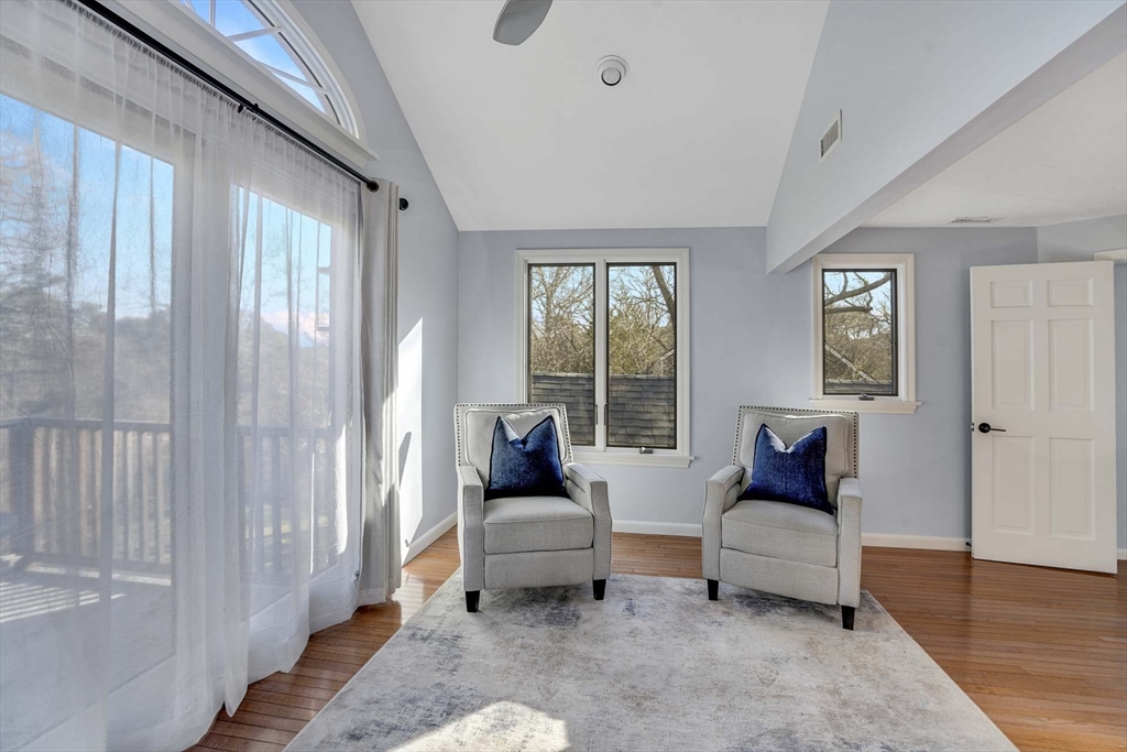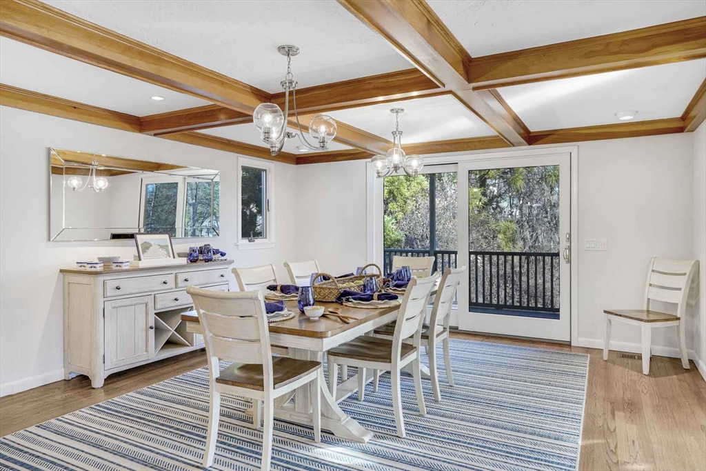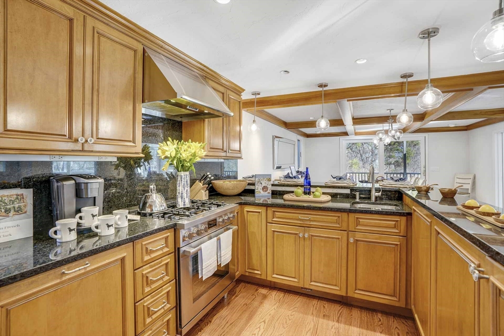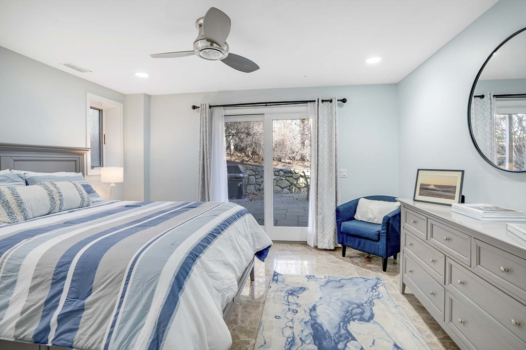 Hidden Cove Gem with Serene Pond Views And Coveted Water Access - Located in the desirable Hidden Cove enclave—a 65+ acre water-access community—this inviting contemporary home offers privacy and high-end finishes with direct access to Sengekontacket Pond and Nantucket Sound. Community amenities include a private boat dock, walking trails, pickleball and tennis, all near Oak Bluffs. The sun-filled interior features a living room with vaulted ceilings, a wood-burning fireplace, and floor-to-ceiling windows. The chef’s kitchen is appointed with stone countertops and Dacor® appliances. The second-floor primary suite boasts a private balcony with pond views and a stylish en suite bath. The garden level provides additional bedrooms and a bonus space with a Murphy bed. Outside, enjoy a bluestone terrace and two levels of decks overlooking a private yard. This move-in-ready home is offered fully furnished with over $80,000 in 2026 summer rental income already secured.