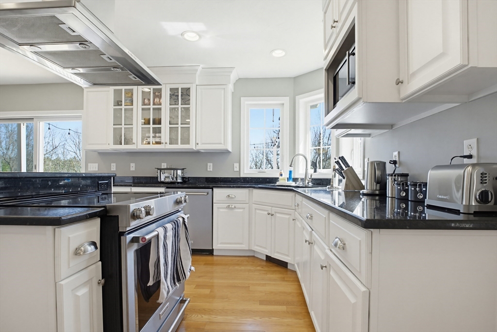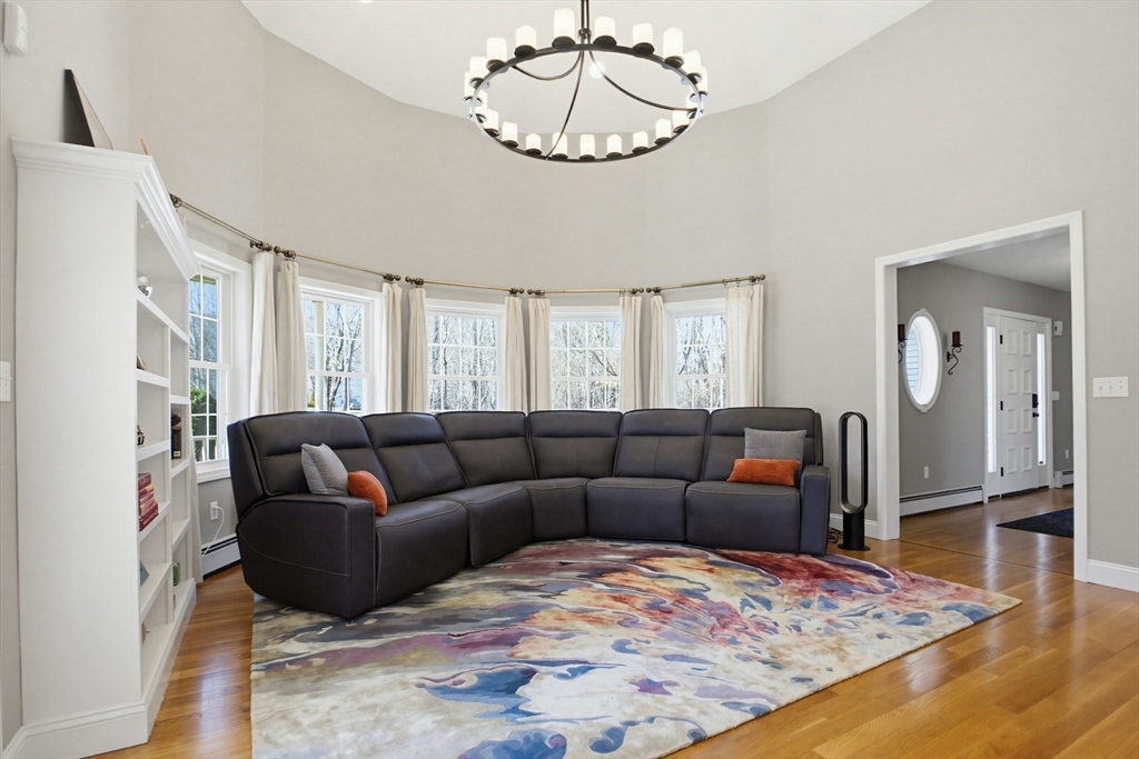 Exceptional new offering combining custom construction, privacy, and versatility. Meticulously maintained and set on landscaped acreage with scenic pond views, this home features an open floor plan and a sun-filled, southern-facing gourmet kitchen. The first floor offers a sunken family room with custom stone fireplace open to the kitchen, dining area, formal living room with cathedral ceilings, and private office. Upstairs includes an expansive primary suite with spa-like bath and walk-in closet, plus three additional bedrooms and full bath. A private in-law suite with full kitchen, full bath with laundry, and two entrances offers excellent flexibility. Large walk-out basement provides future potential. Enjoy outdoor living from the wrap-around covered front porch and an oversized heated pool with deck overlooking the pond. Includes three-car garage with EV charging and high-efficiency Buderus boiler. Ideal for multi-generational living -- Schedule your private showing today!