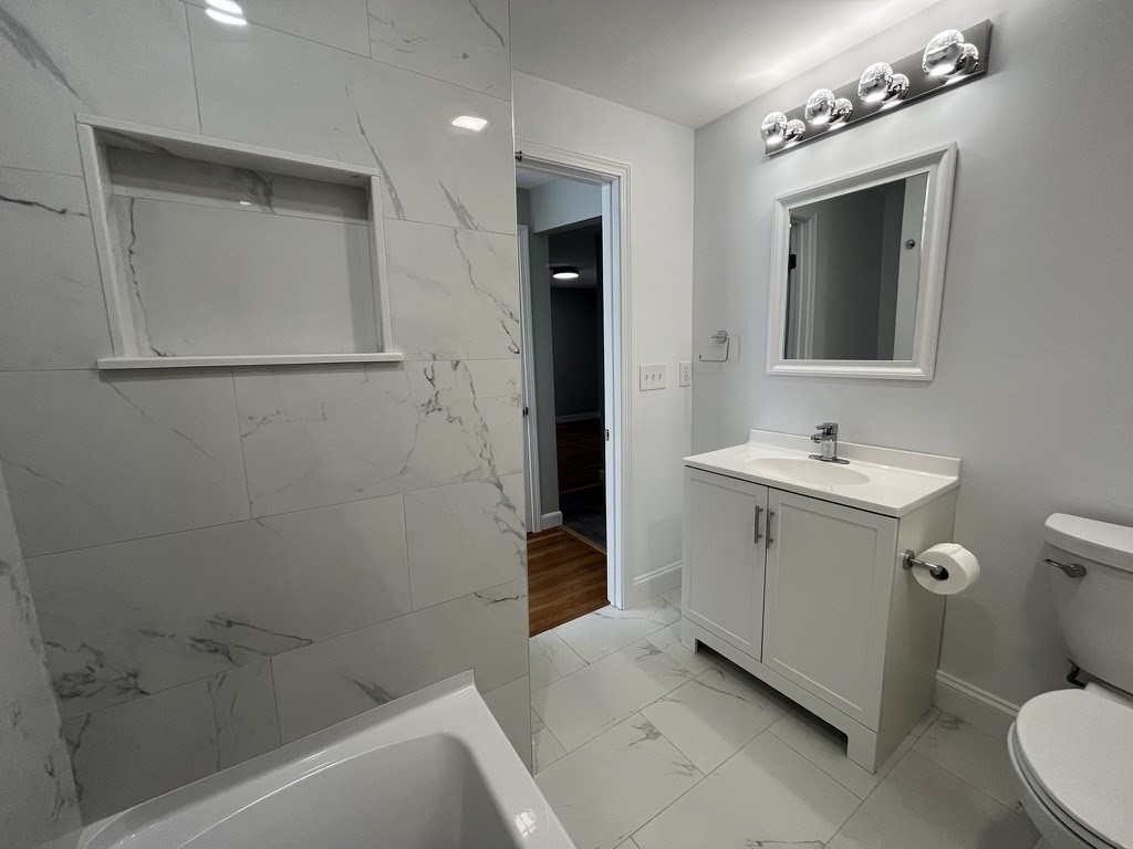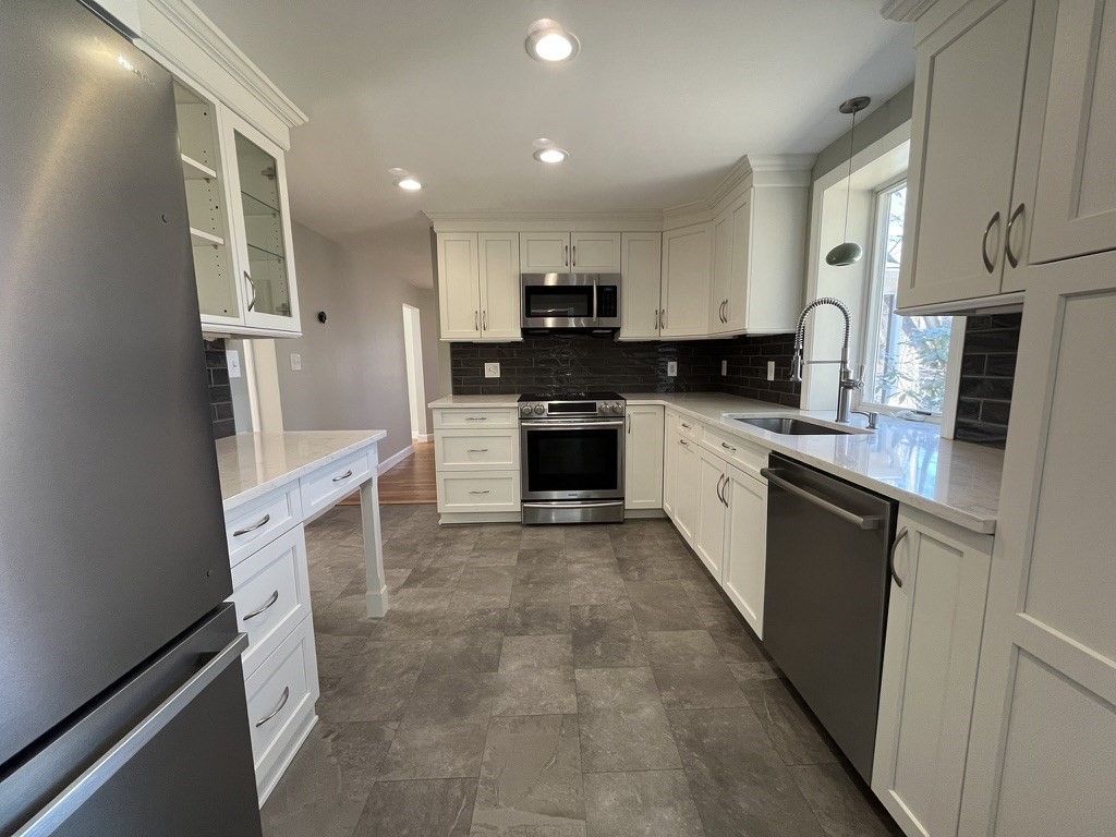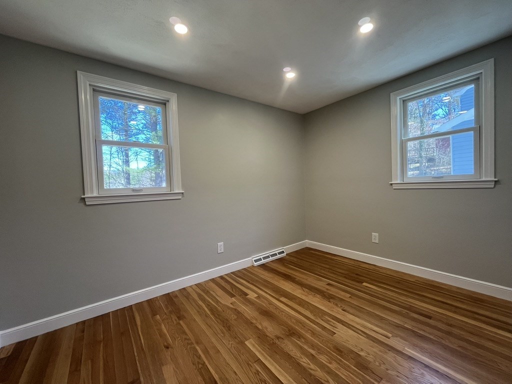 Newly renovated home with stunning nature views, located at the end of a quiet cul de sac. 2 brand new full bathrooms with beautiful tile work. Updated kitchen with tons of storage. Freshly painted and recessed/overhead lighting in every room. 3 bedrooms with many additional bonus rooms with loads of natural light, as well as a screened-in porch. Large office/den on the first floor with built-in shelves, bay windows, pocket door, and a skylight. Brand new HVAC system, water heater, and 12 replacement windows. Conveniently located near shopping, schools, recreation courts, mass pike, and logan express.