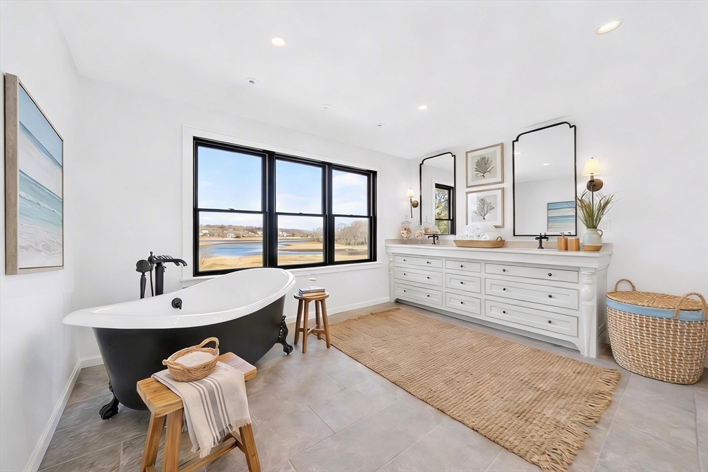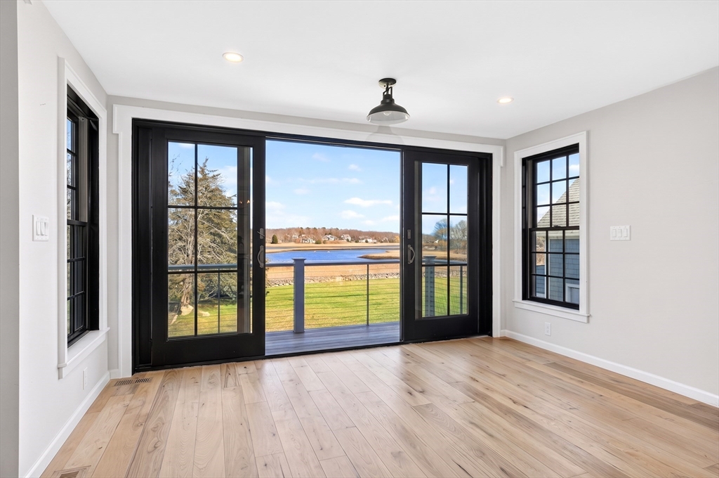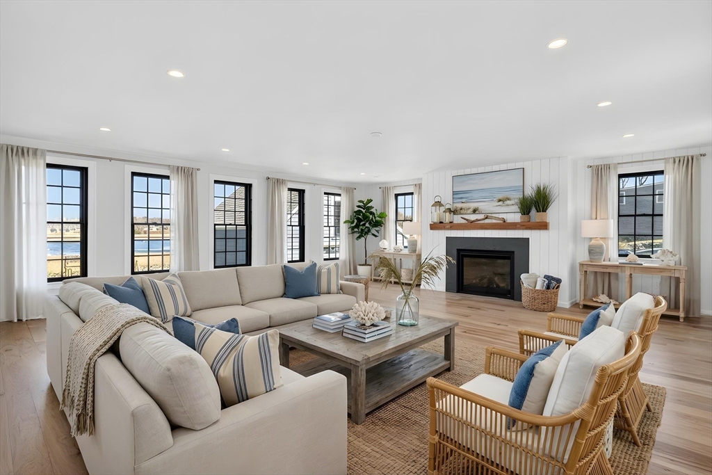 Absolute perfection at this stunning waterfront home with 1.55 acres of panoramic views, and direct water access on the Gulph River. The custom built home underwent a meticulous 2 year renovation, seamlessly merging original details with modern luxury. The main house offers 5,700SF of sophisticated living space. Walls of glass overlook the estuary, while sunny living spaces set the stage for entertaining. The heart of the home is a chef's kitchen featuring professional grade Viking appliances, leathered quartzite countertops/island, butler's pantry, fireplaced family room, & french doors opening to a waterside deck for indoor/outdoor living. Primary suite with walk-in closet, spa bath, and balcony to enjoy ever changing landscapes. Three additional ensuite bedrooms complete the second floor. Lower level houses a gym, office, rec room, bedroom, full bath, patio, and sweeping lawn offering endless possibilities for pool and dock. Minutes to Cohasset Village restaurants, shops, galleries.