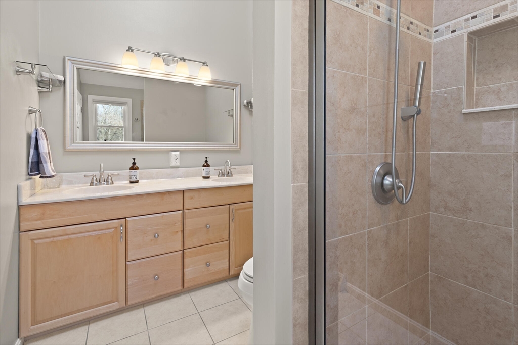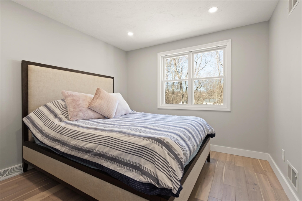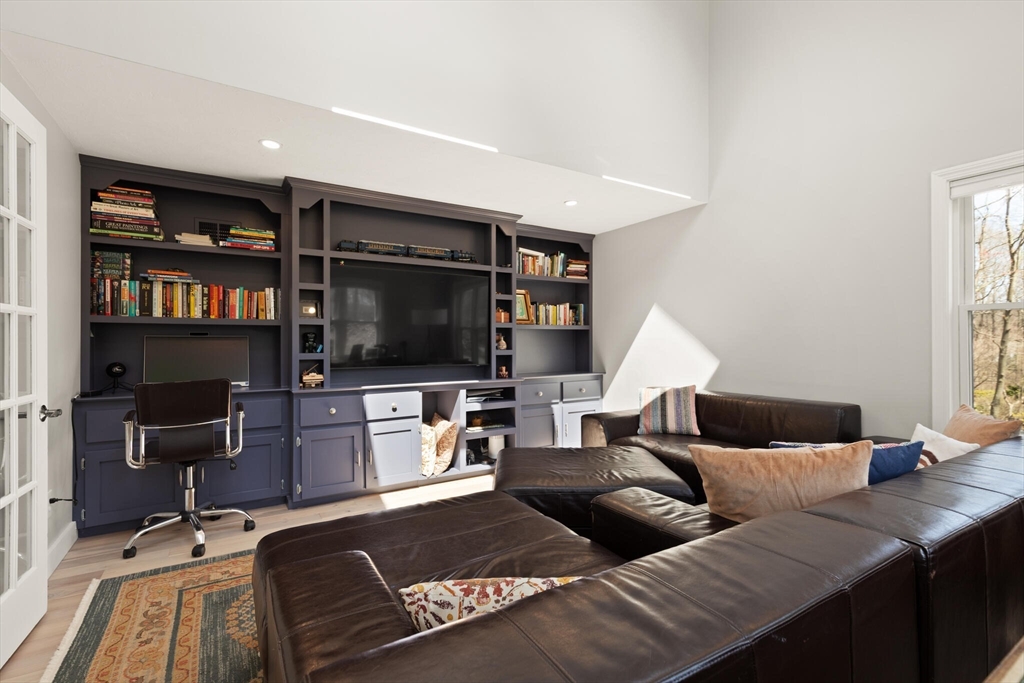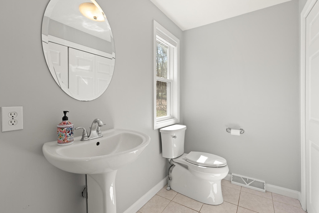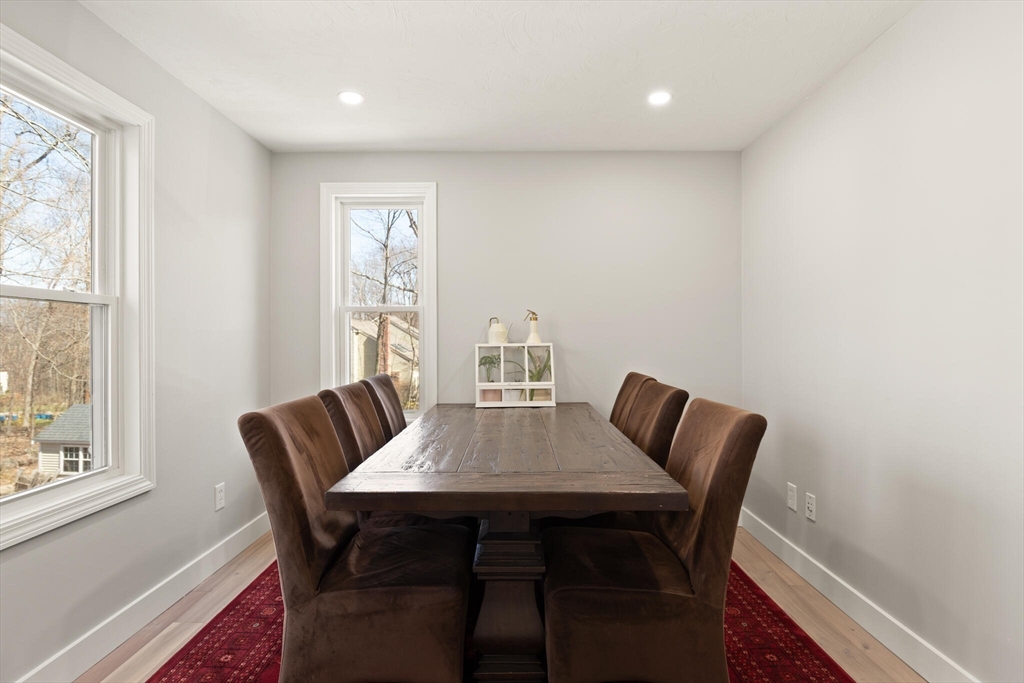 Step into this beautifully maintained home, set on a quiet cul de sac close to top-rated schools and the town center. A welcoming entry with a paved walkway and stone accents creates great curb appeal. Inside, a bright living area features large windows, glass-paneled doors, and custom built-ins.The kitchen spans the rear of the home with a center island, quality cabinetry, and ample storage, flowing into the dining area with a gas fireplace and access to the deck. A private office and half bath complete the main level.Upstairs, the sunlit primary suite offers vaulted ceilings, double closets, and an updated bath with dual sinks. Two additional bedrooms and a renovated full bath complete the second floor.Enjoy the spacious deck overlooking a fenced yard, plus a side yard with a fire pit and room to play. Convenient to town common and Hopkinton’s highly rated schools.