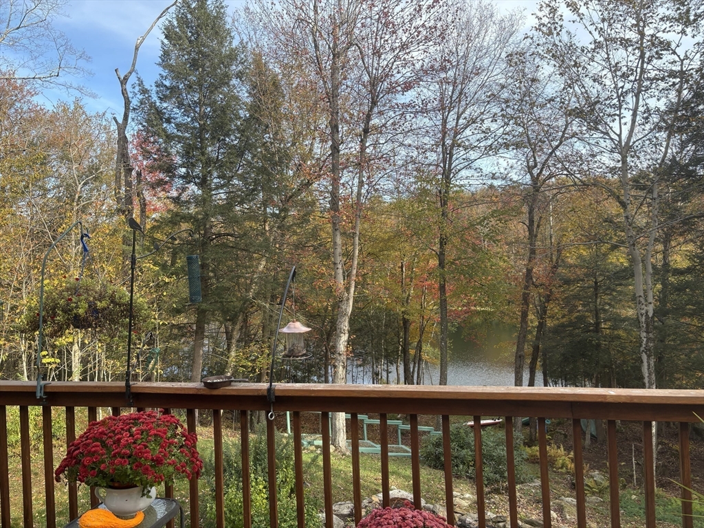 An amazing waterfront home situated on a very private .65 acre lot in the Wildwood Community of Tolland Massachusetts. Gorgeous cherry hardwood flooring, fieldstone fireplace, soaring ceilings with wood and beams, and an open concept floor plan with nearly all rooms having stunning views of the lake and private yard. A beautiful kitchen with windowed cherry cabinets, cherry wood floors, granite countertops, countertop range and double ovens. Wildwood is a private community covering 740 acres, of which 40% is in its natural state. The community boasts two ponds for fishing, swimming on five sandy beaches and boating. Only sail, paddle or electric-powered boats with restrictions are permitted. There is tennis, Pickleball, basketball, baseball, volleyball, hiking and cross country skiing for members. Please see attached Features Sheet for full details of this home.